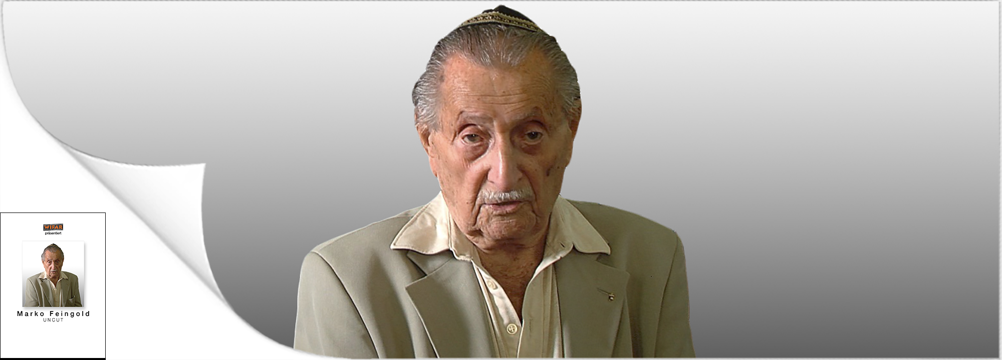 Marko Feingold, geboren am 28. Mai 1913, verstorben am 19. September 2019, wuchs in der Wiener Leopoldstadt auf. Nach einer Lehre als kaufmännischer Angestellter fand er Arbeit in Wien, wurde arbeitslos und war gemeinsam mit seinem Bruder Ernst als Reisender in Italien unterwegs.