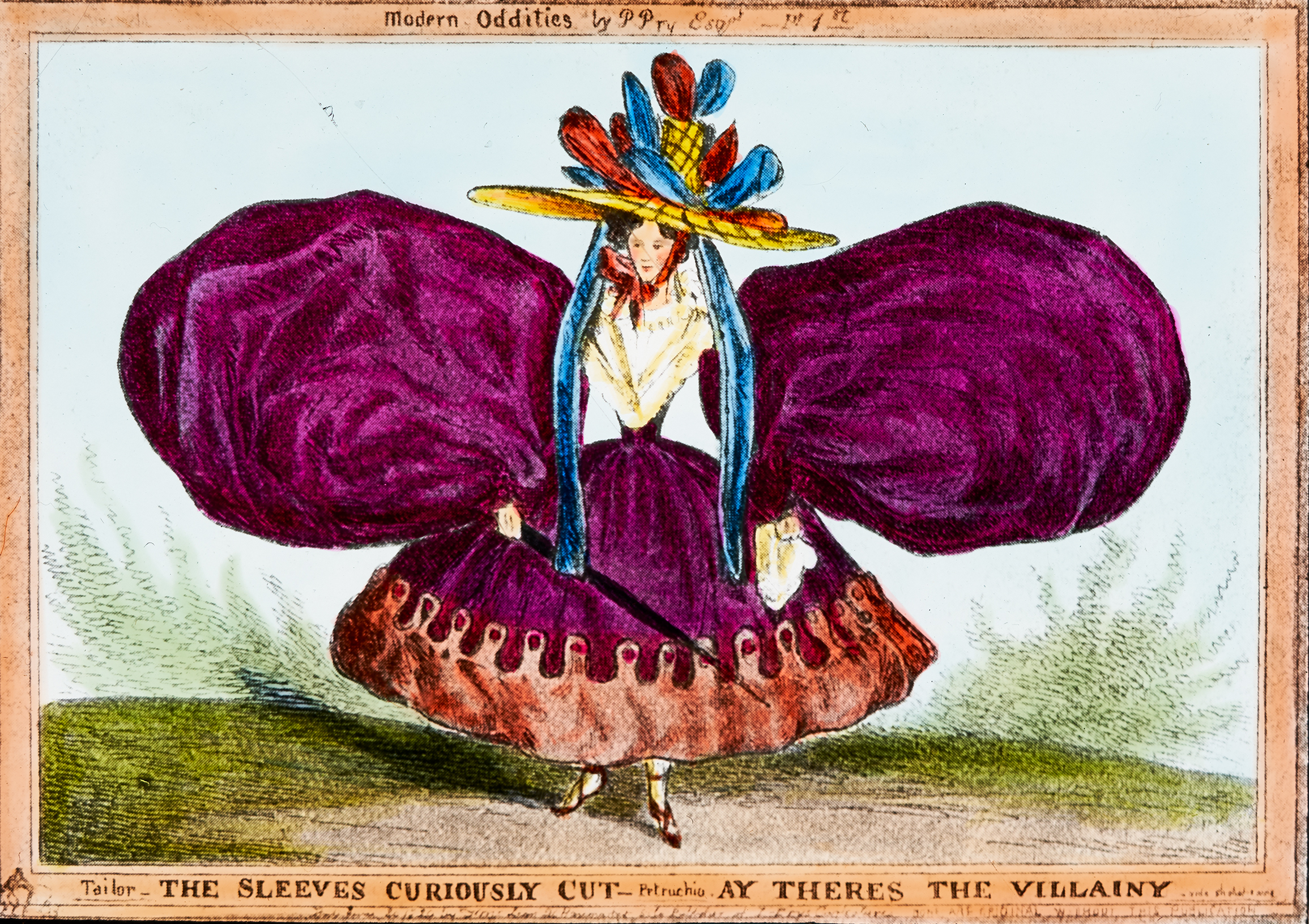 Karikatur mit der Aufschrift "The sleeves curiously cut - Ay theres the villainy".
