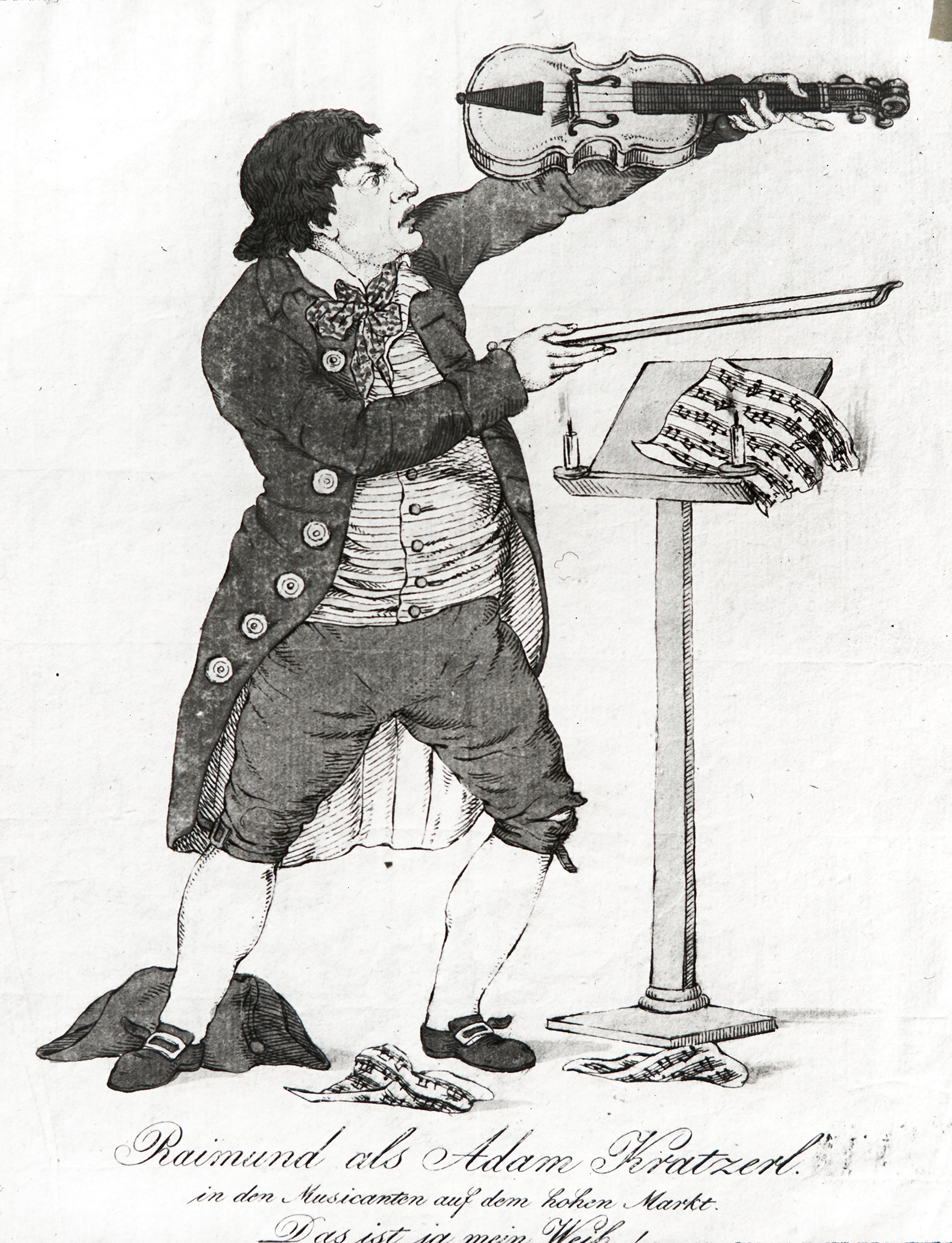 Ferdinand Raimund als Adam Kratzerl in den Musicanten auf dem Hohen Markt.