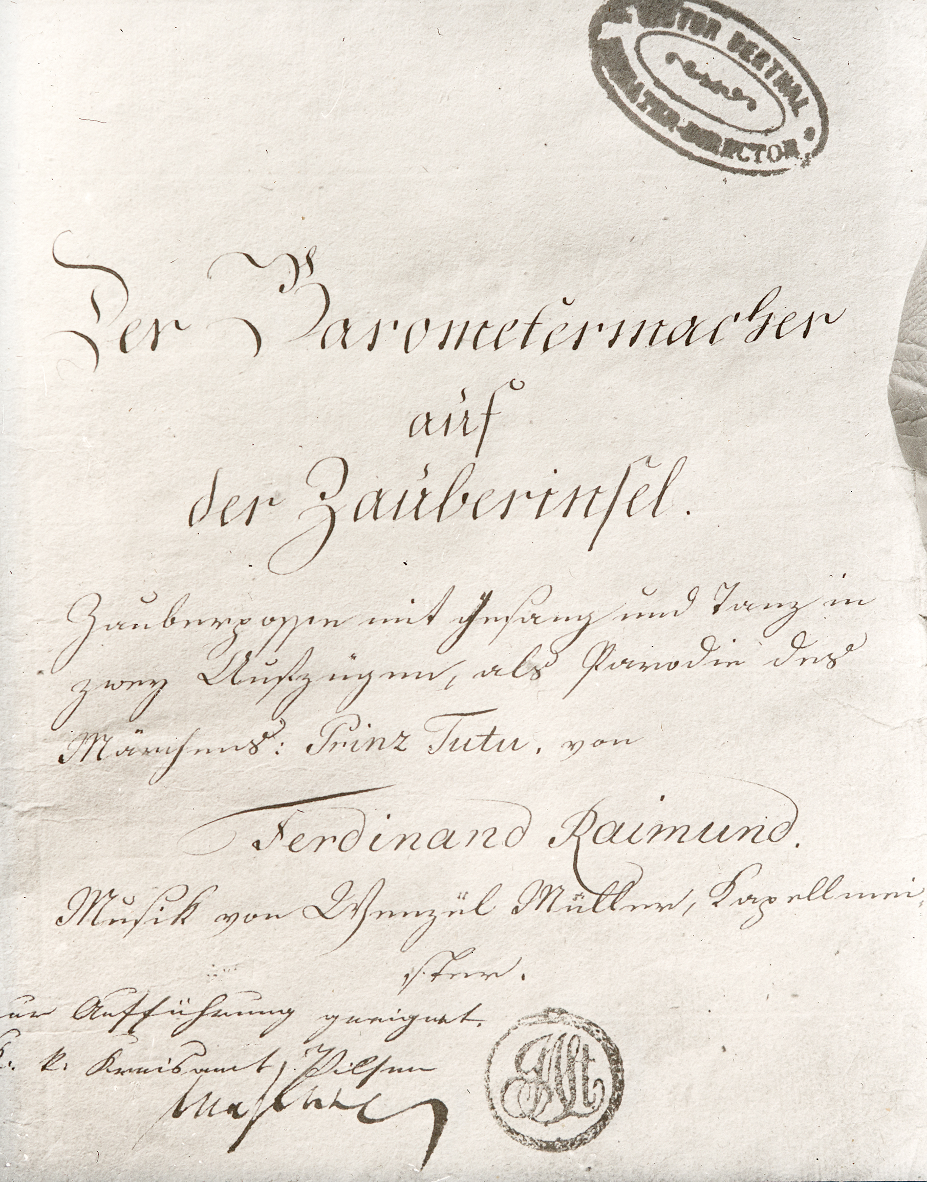 Die Uraufführung fand am 10. November 1826 im Theater in der Leopoldstadt statt.