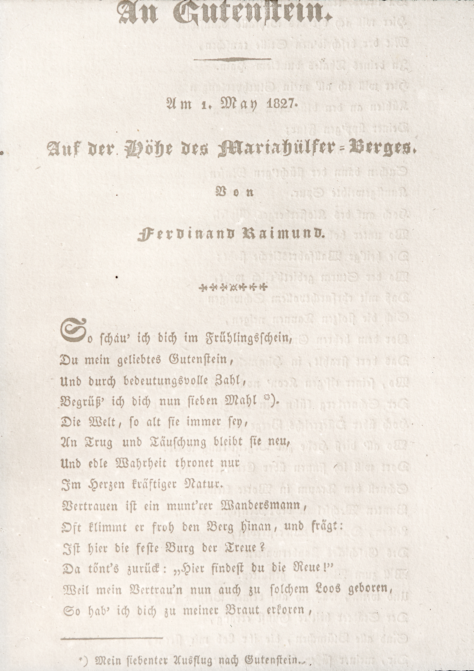 Gedicht an Gutenstein von Ferdinand Raimund (1827):