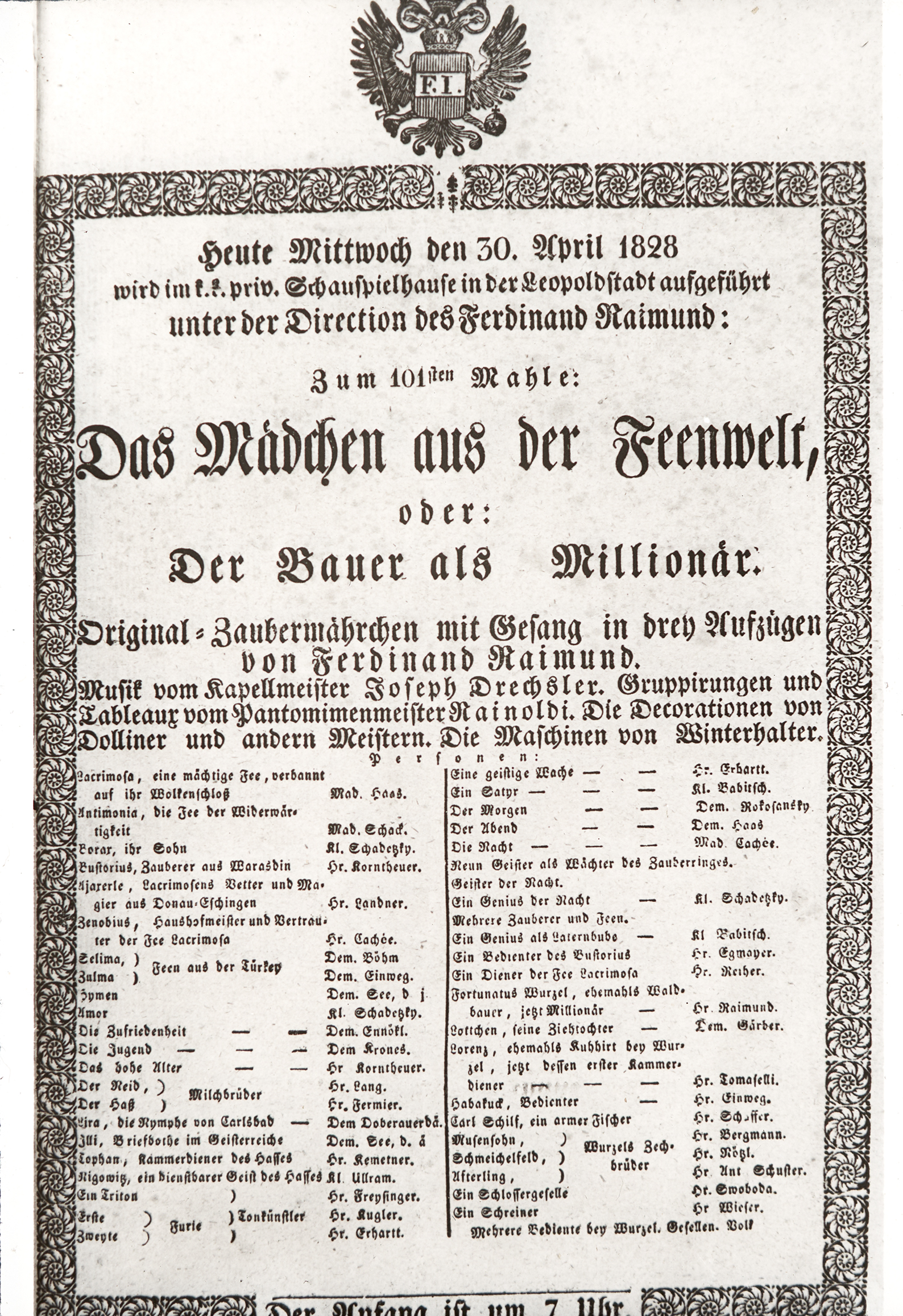 Das Mädchen aus der Feenwelt, oder: Der Bauer als Millionär Ein romantisches Zaubermärchen mit Gesang in drei Aufzügen von Ferdinand Raimund.