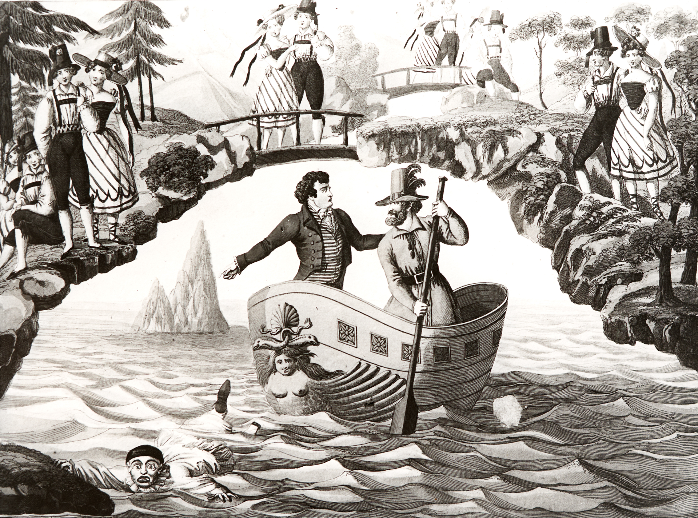 Szene aus "Sylphide das Seefräulein", geschrieben von Therese Krones und uraufgeführt am Theater in der Leopoldstadt.