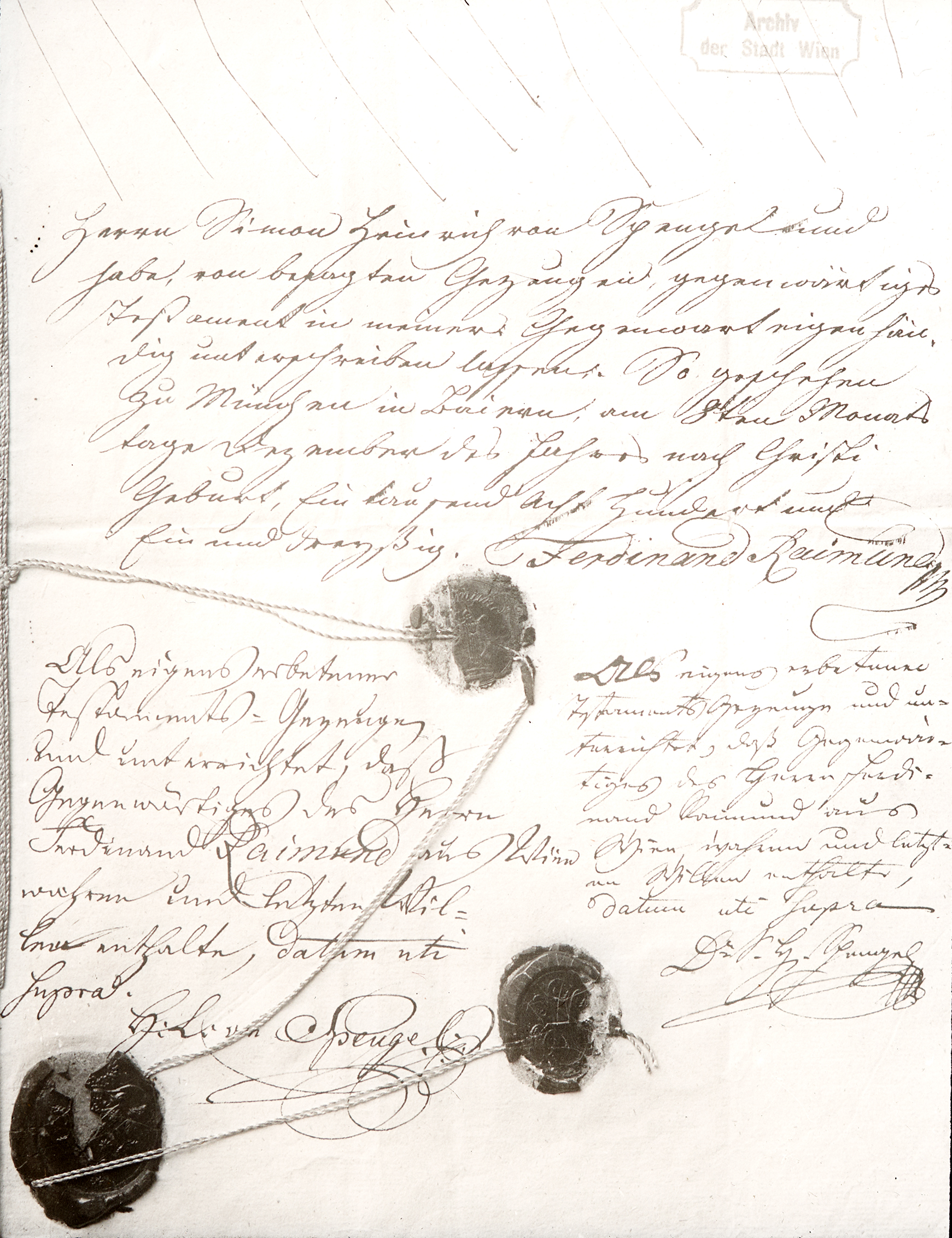 Im September 1834 kaufte Raimund eine Villa am Land. Um einen stolzen Preis von 4450 Gulden konnte er das Haus erwerben, er wohnte dort gemeinsam mit Antonie Wagner bis zu seinem Tod.
