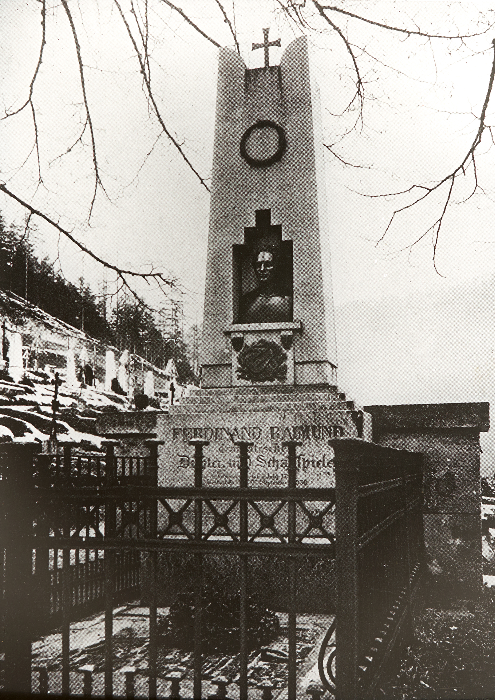 Im Alter von 46 Jahren stirbt Ferdinand Raimund an einer tödlichen Schussverletzung. Da er dachte, er sei an Tollwut erkrankt, weil ihn sein Hund gebissen hatte, entschied er sich am Weg nach Wien dazu, sich durch einen Schuss in den Mund umzubringen.