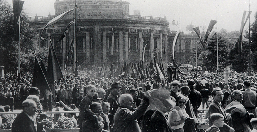 Zeitbilder wie beispielsweise das Hochwasser in der Oberlaaer Straße im Jahr 1951 sowie Bilder aus dem Fürsorgebereich, von neu errichteten Schulen und von der Errichtung neuer Brücken (Floridsdorfer Brücke, Donaukanalbrücken).