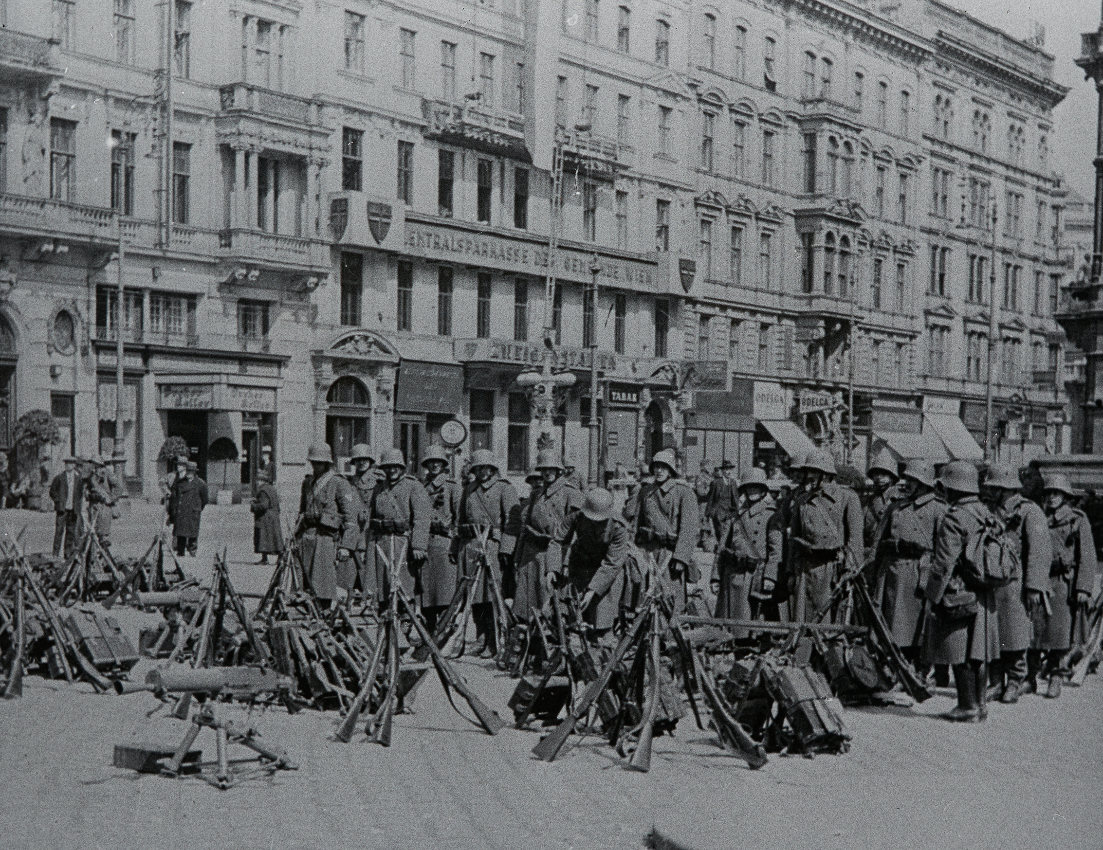 Soldaten vor der Zentralsparkasse der Gemeinde Wien