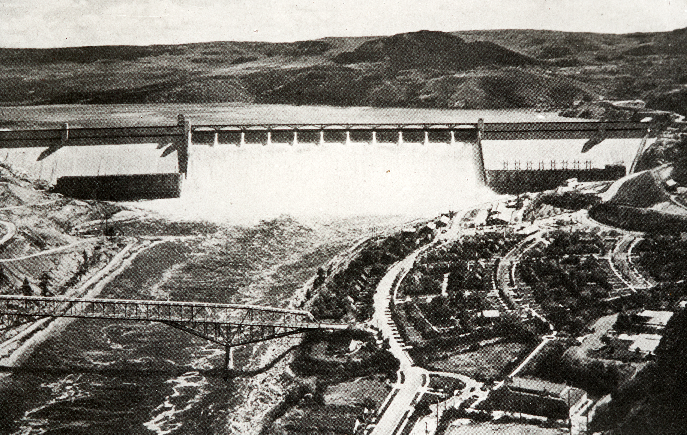 Eine Talsperre mit einer Gewichtsstaumauer und einem Wasserkraftwerk am Columbia River im US-Bundesstaat Washington. Der Stausee heißt Franklin Delano Roosevelt Lake, nach dem früheren amerikanischen Präsidenten Franklin Delano Roosevelt, der während der Planung und des Baus Präsident war. Er wurde 1946 zur Lake Roosevelt National Recreation Area erklärt.