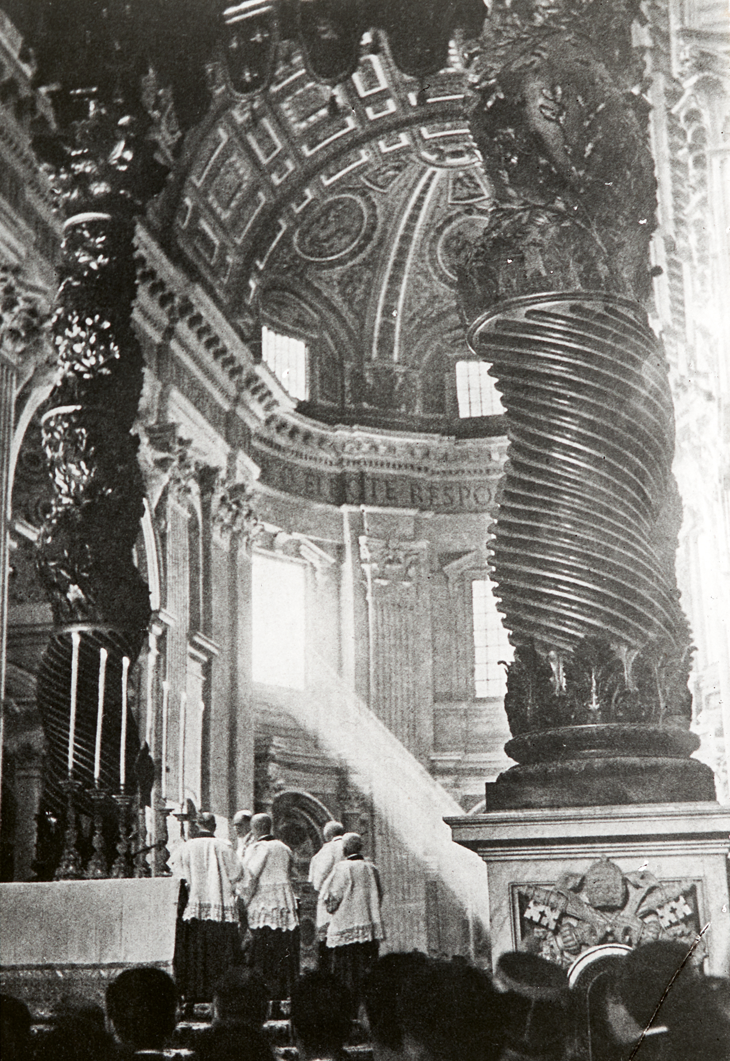 Einen Papstaltar gibt es beispielsweise im Petersdom. Er befindet sich im Zentrum der Basilika, unter einem ca. 28,50 m hohen, bronzenen Baldachin, der unter der Leitung Gian Lorenzo Berninis entstand. Der Baldachin wurde zwischen 1624 und 1633 errichtet. Der Papstaltar ist ein besonderes Kennzeichen der vier römischen Basilicae maiores.