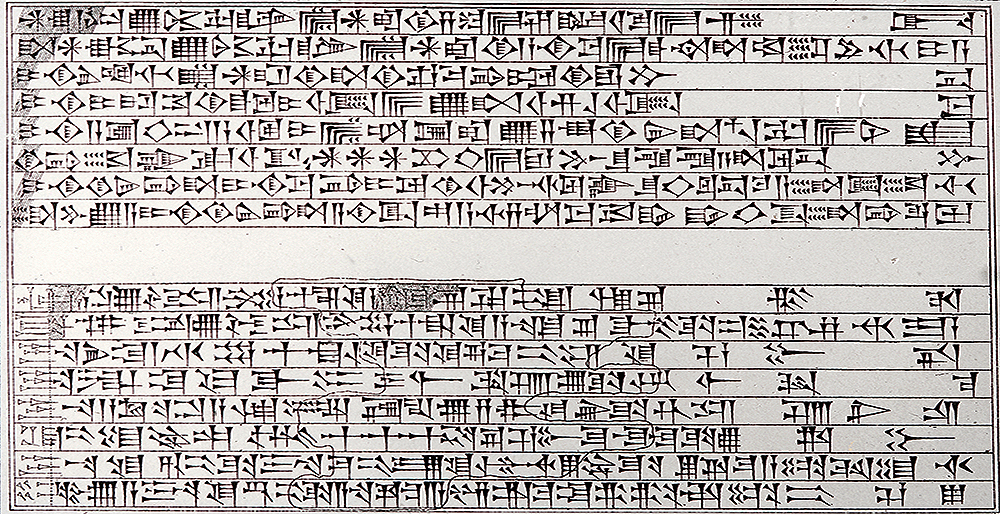 Die Ursprünge der Schrift mit Verweisen auf arabische, phönikische, indische und weitere Schriftarten. Mittels Keilen wurden bereits früh Inschriften in Steine geritzt.