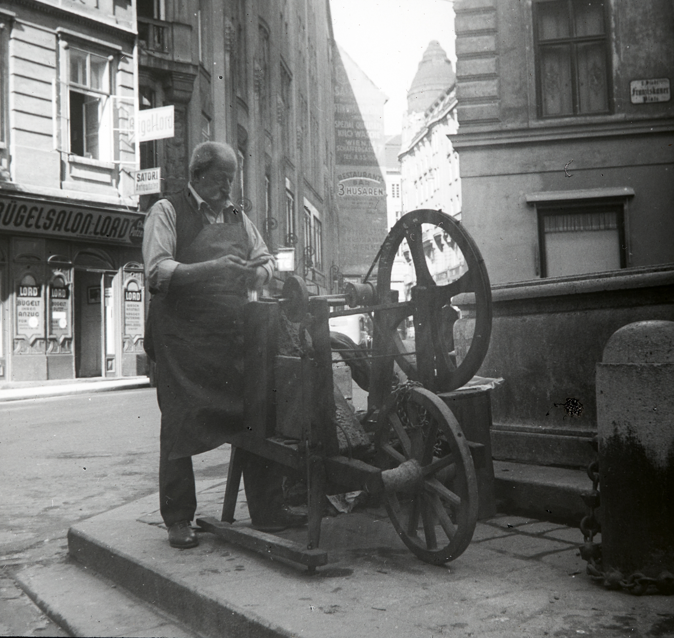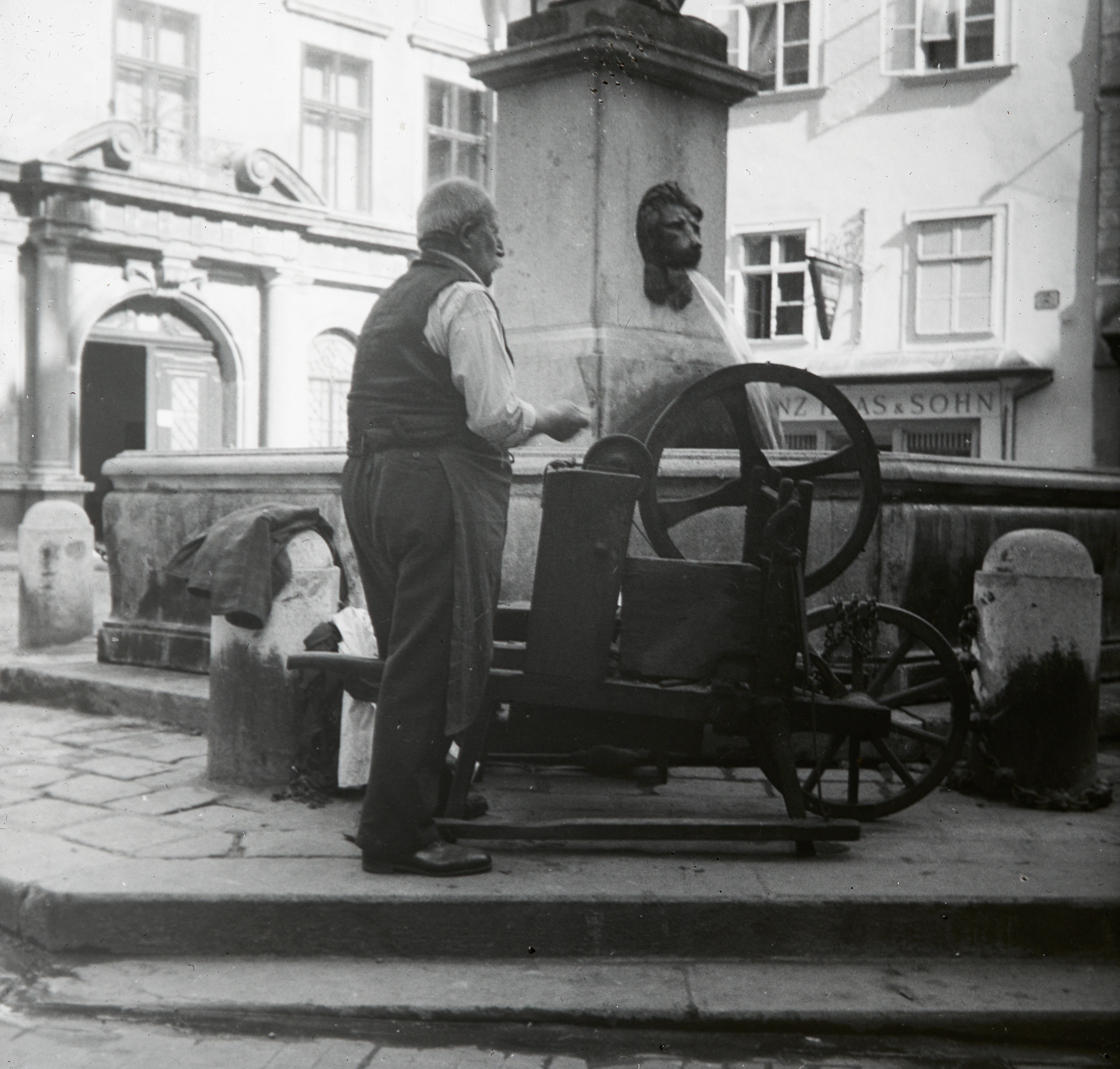 Scherenschleifer am Franziskanerplatz vor dem Mosesbrunnen