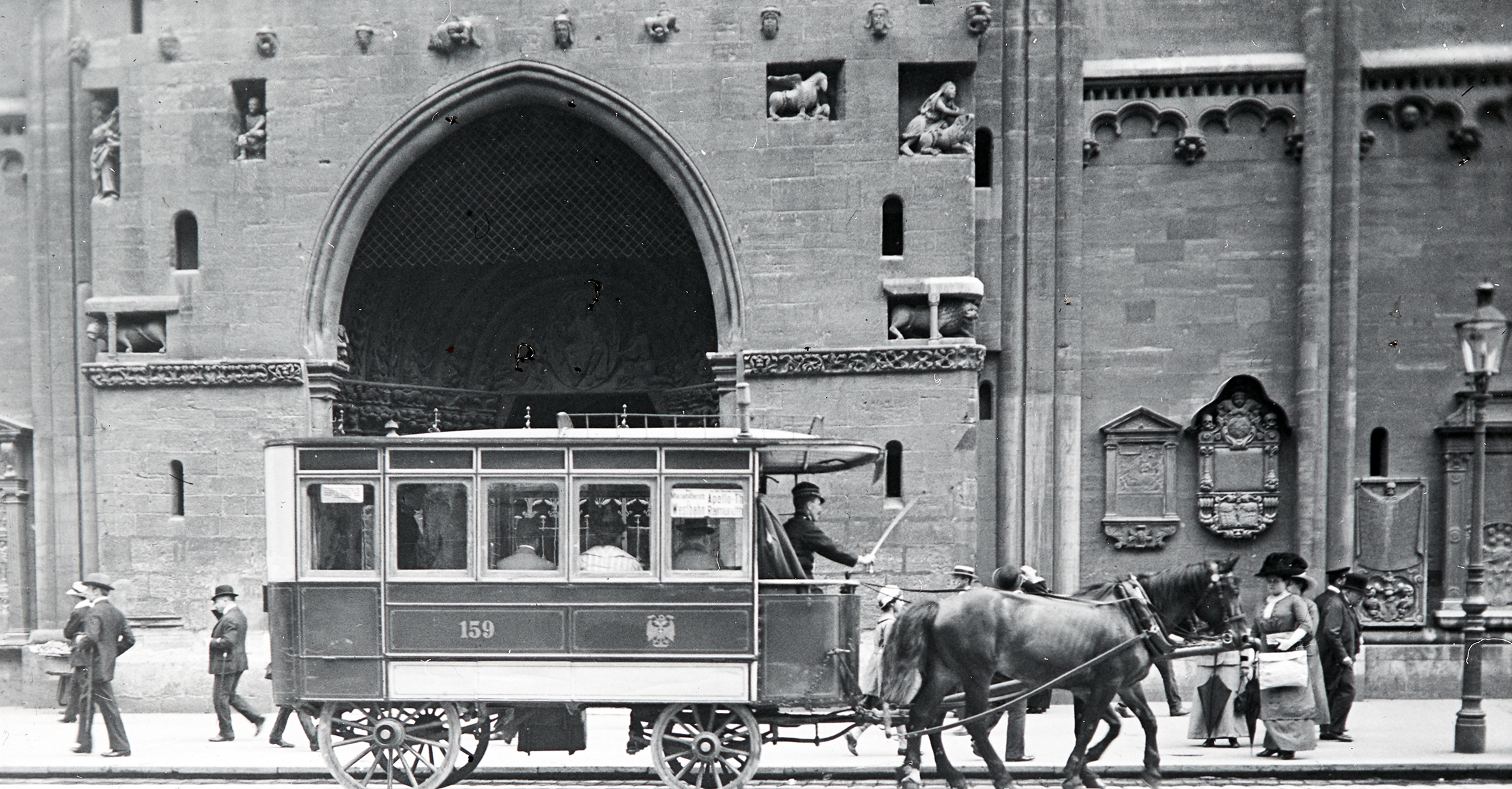 Ein Stellwagen am Stephansplatz, der Waggon trägt die Nummer 159.