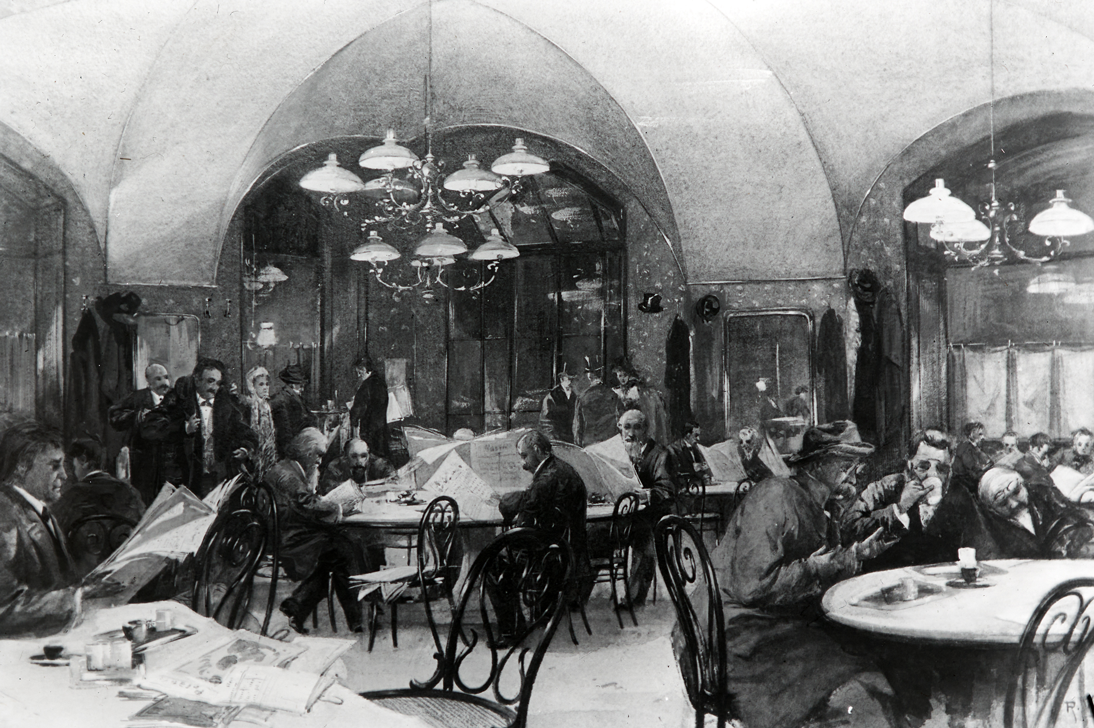 Gemälde eines alten Literaten-Kaffehauses in Wien