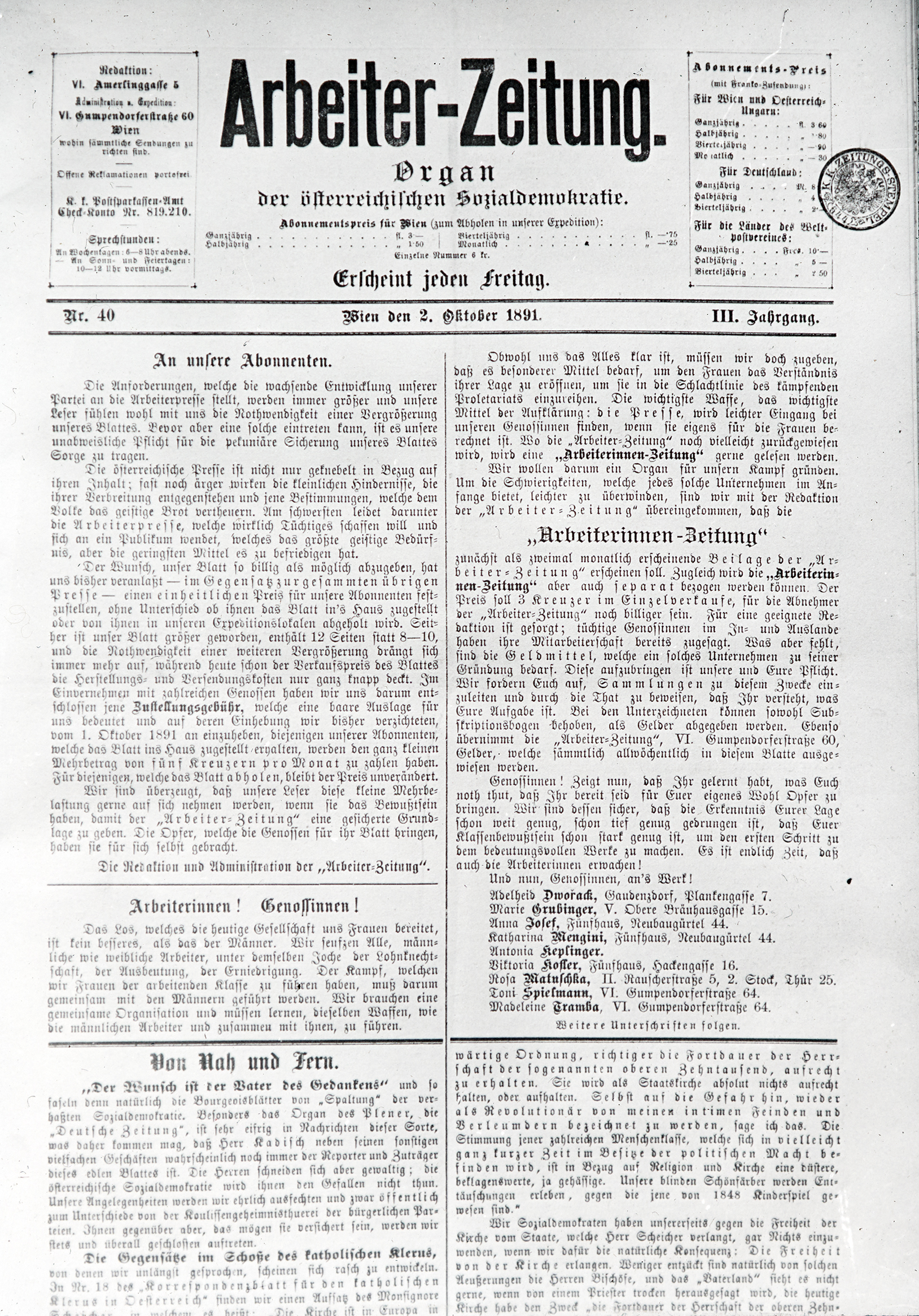 Die Arbeiter-Zeitung (AZ in der Kurzform), war in fast ihrer gesamten Herausgabezeit das „Sprachrohr“ der österreichischen Sozialdemokratie und erschien – mit oftmals wechselnden Titelzusätzen – von 1889 bis 1938 sowie von 1945 bis 1991. Am 31. Oktober 1991 wurde die Arbeiter-Zeitung nach über 100 Jahren ereignisreicher Geschichte eingestellt.