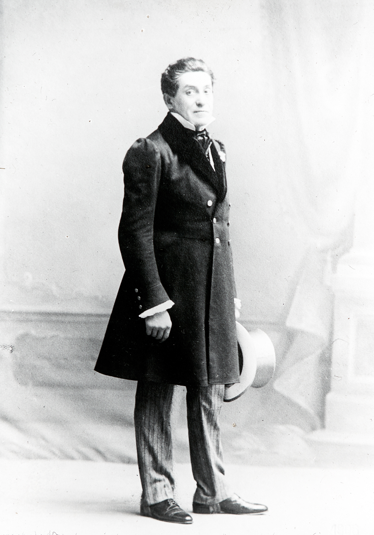 Alexander Girardi in Anzug, in seiner Hand hält er einen Zylinderhut.