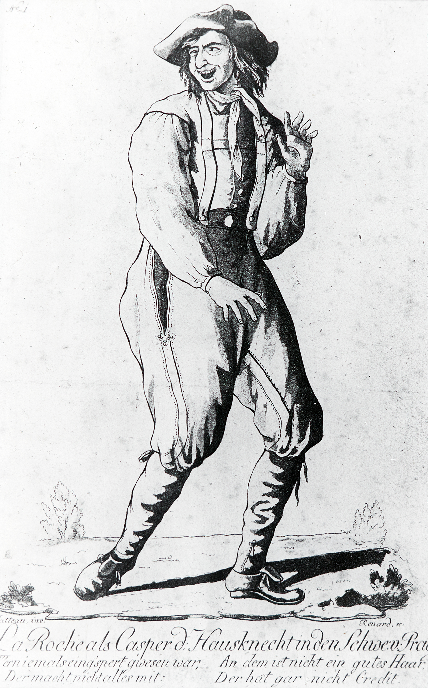 Ursprünglich zum Barbier bestimmt, war Carl von La Roche zwischen 1764 und 1768 Schauspieler in der brunianschen Wandertruppe in Graz und ab 1768 in der Menninger-Truppe in Baden bei Wien, wo er die Figur des "Kasperl" (Attribut: Brustfleck mit einem aufgenähten roten Herz) kreierte und bekannt machte. Ab 1781 spielte er unter Karl von Marinelli am Leopoldstädter Theater in Wien, dessen Hauptstütze er bis zu seinem Tod war. Zahlreiche Stücke wurden speziell für ihn geschrieben.