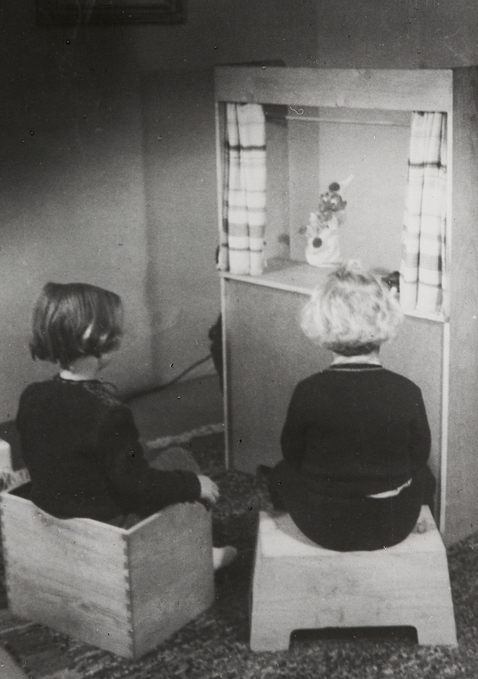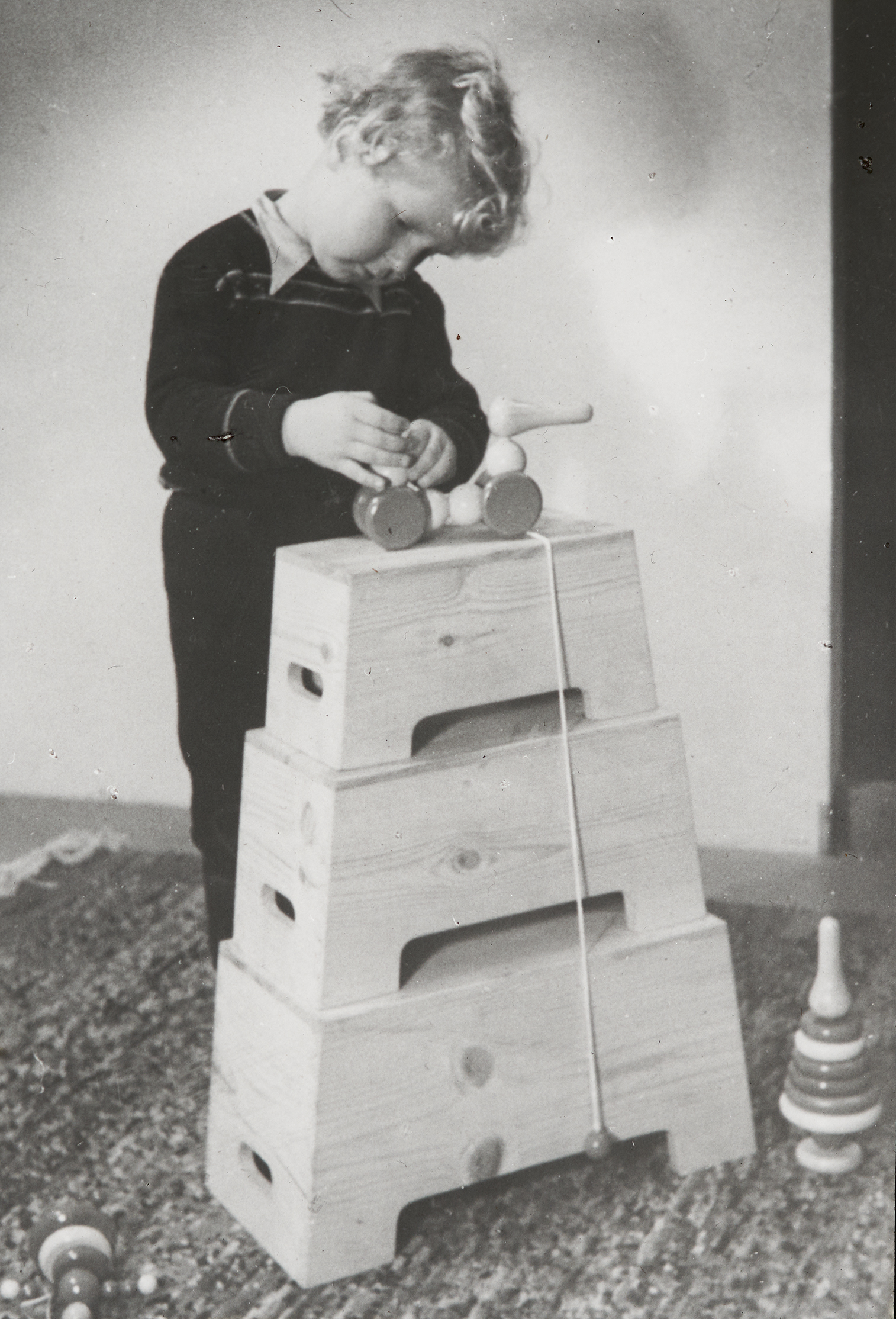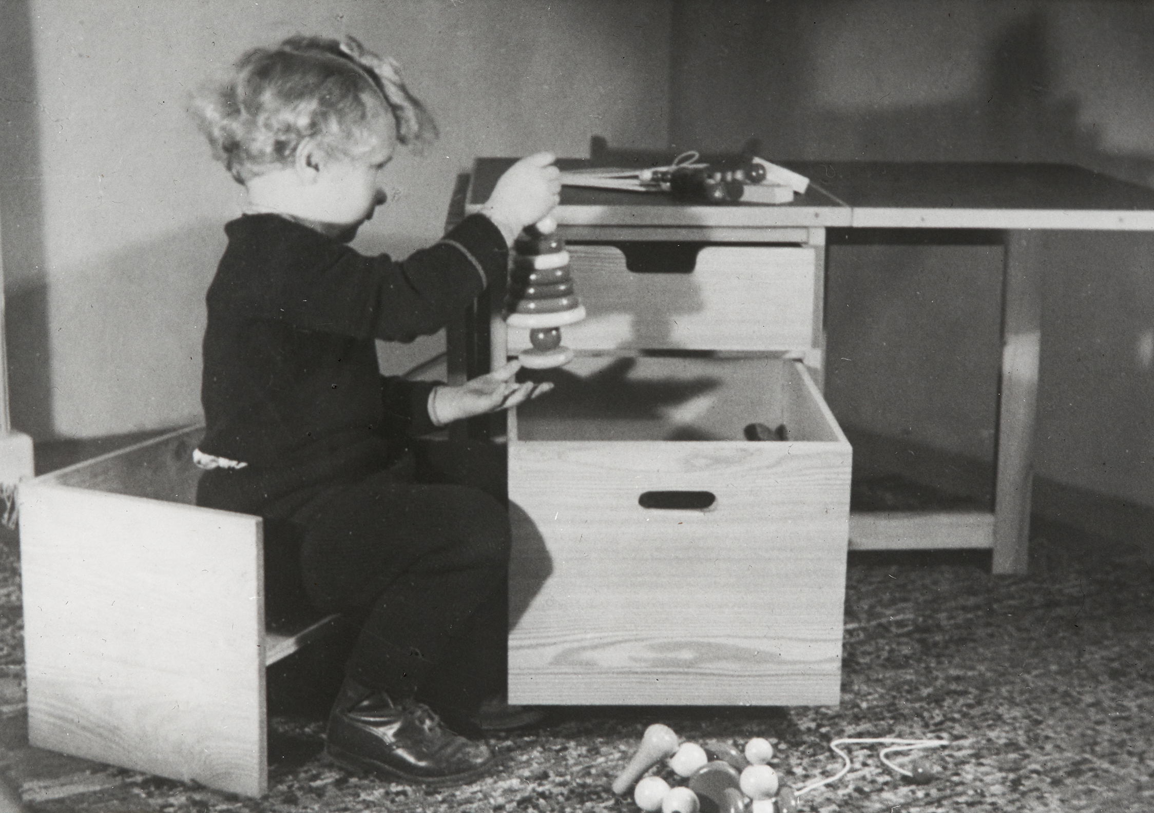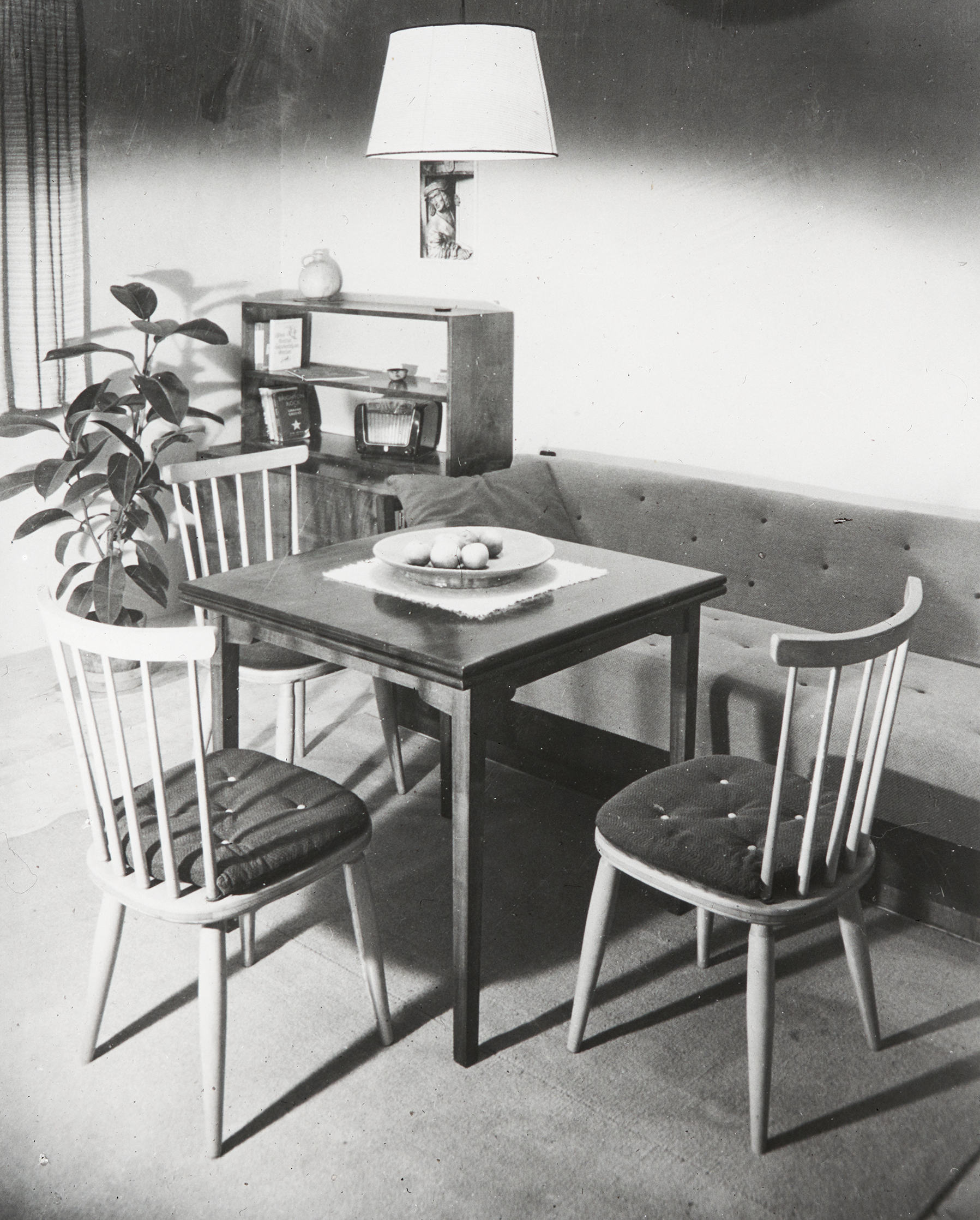 Ein Foto der Ausstellung "Die Frau und ihre Wohnung" im Messepalast. Hier wird internationale Architektur, etwa aus Amerika oder England, ausgestellt.