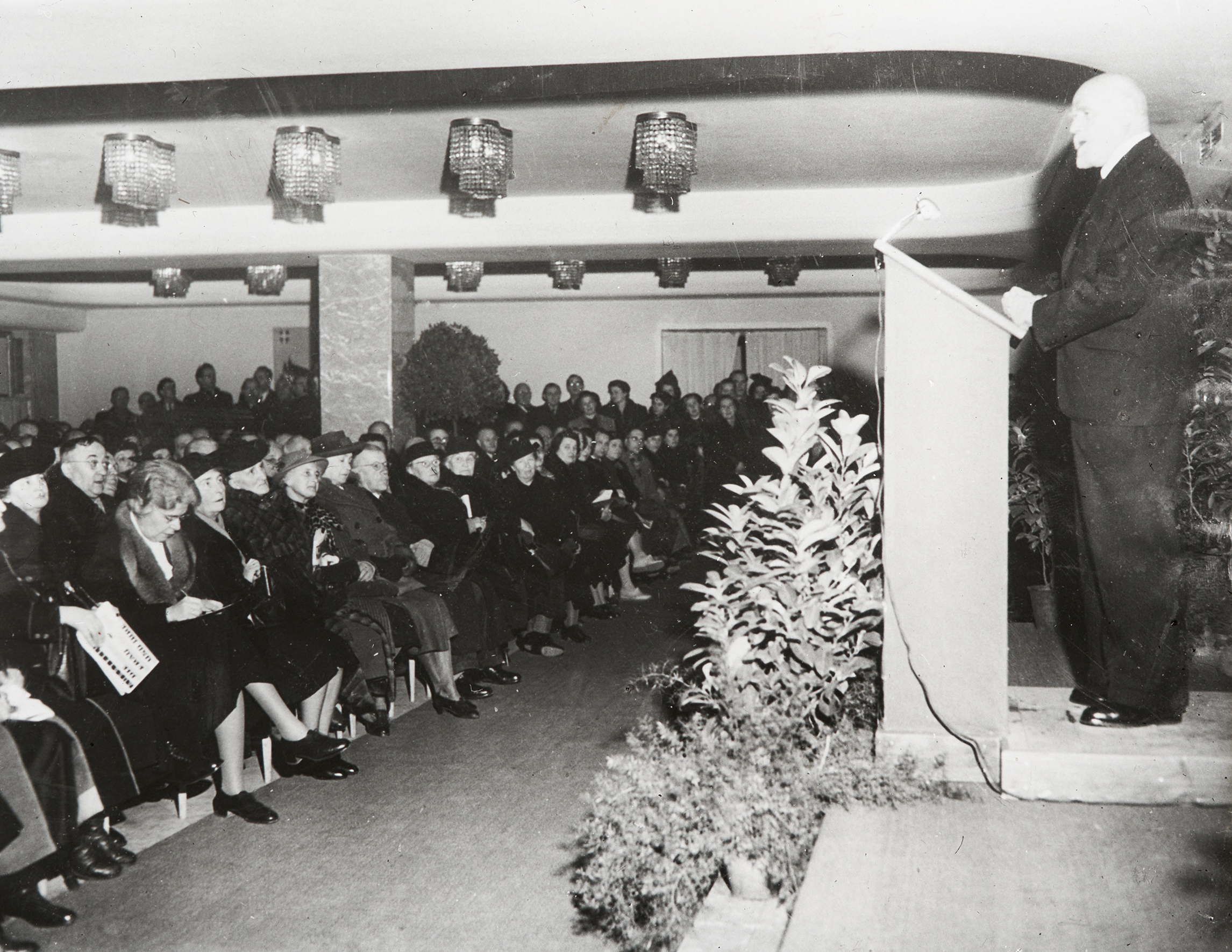 Theodor Körner eröffnet die Ausstellung "Die Frau und ihre Wohnung" im Messepalast.