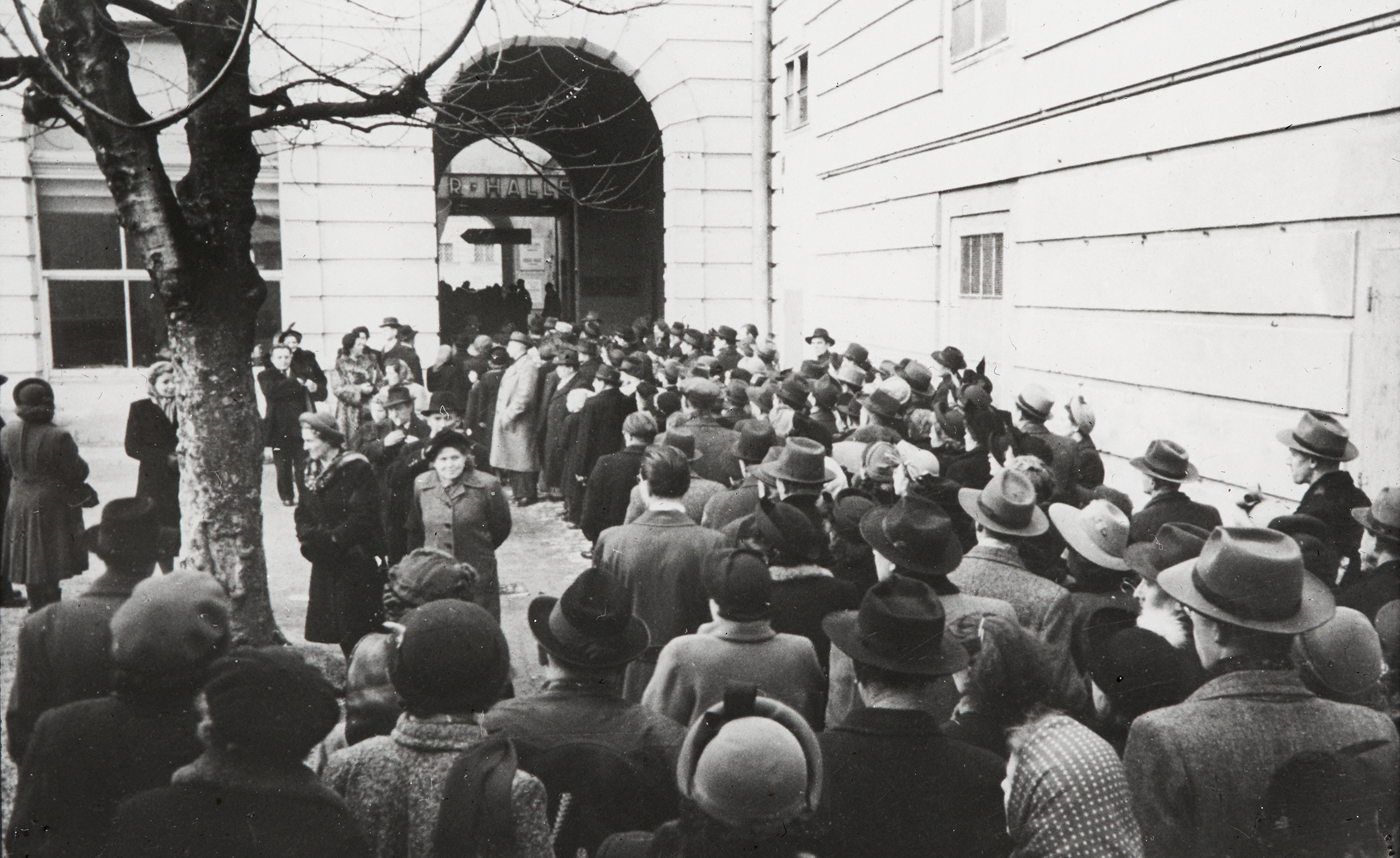 Besucher:innen der Ausstellung "Die Frau und ihre Wohnung"