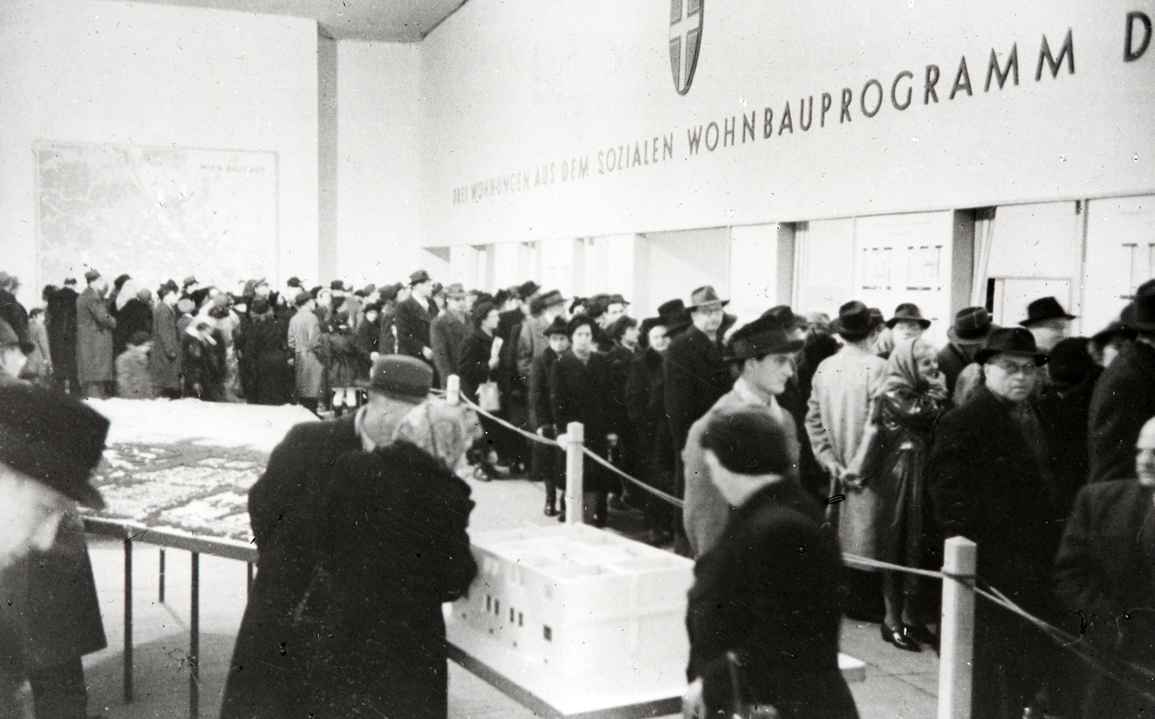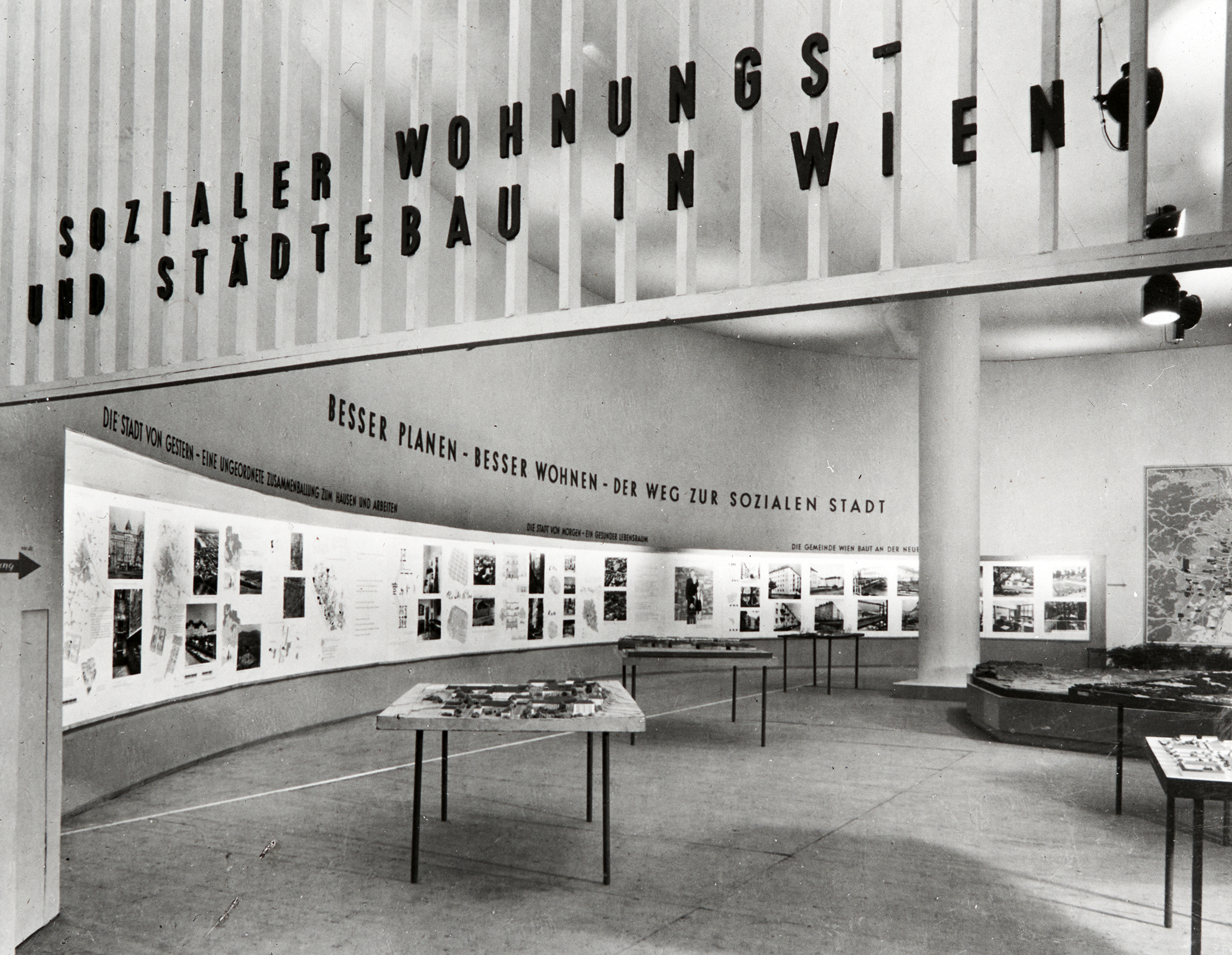 Hier handelt es sich um den Teil der Ausstellung namens "Sozialer Wohnungs- und Städtebau in Wien".