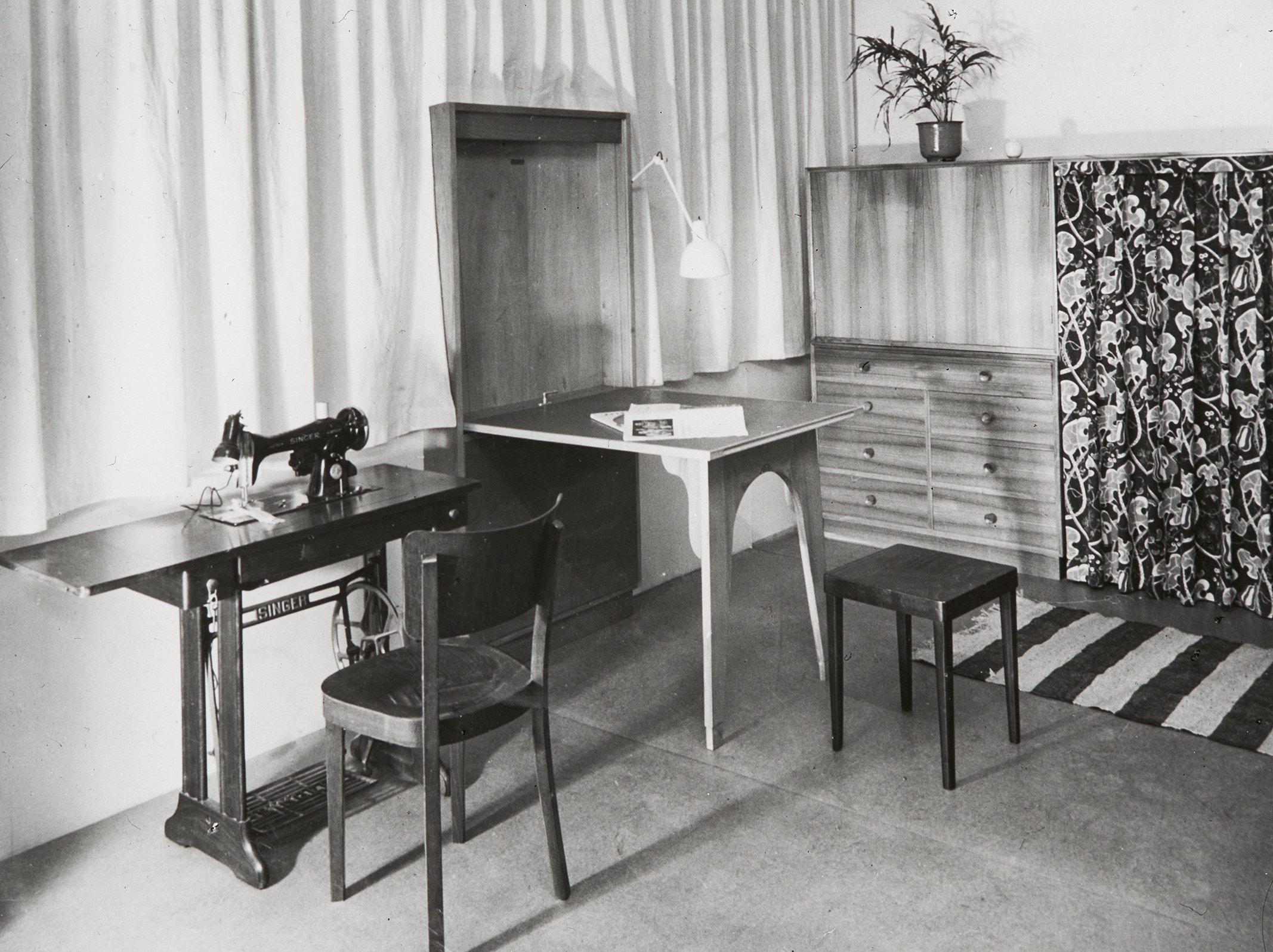 Der Wandtisch ist in die Wand geklappt, neuer Raum entsteht.
