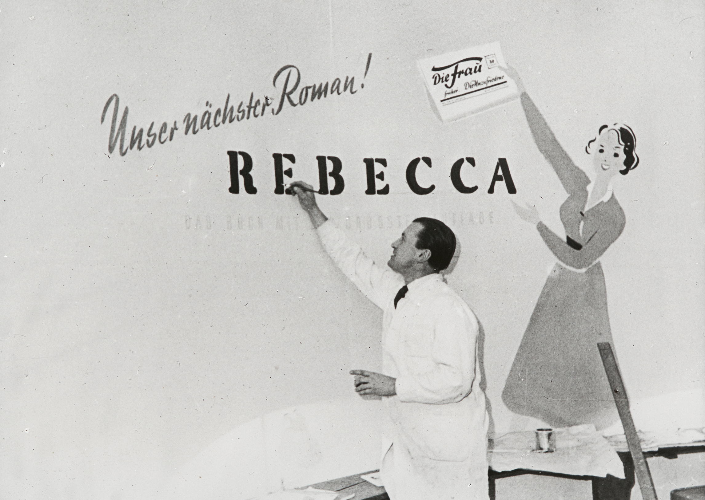 Werbung für einen neuen Roman namens "Rebecca" in der Zeitschrift "Die Frau".