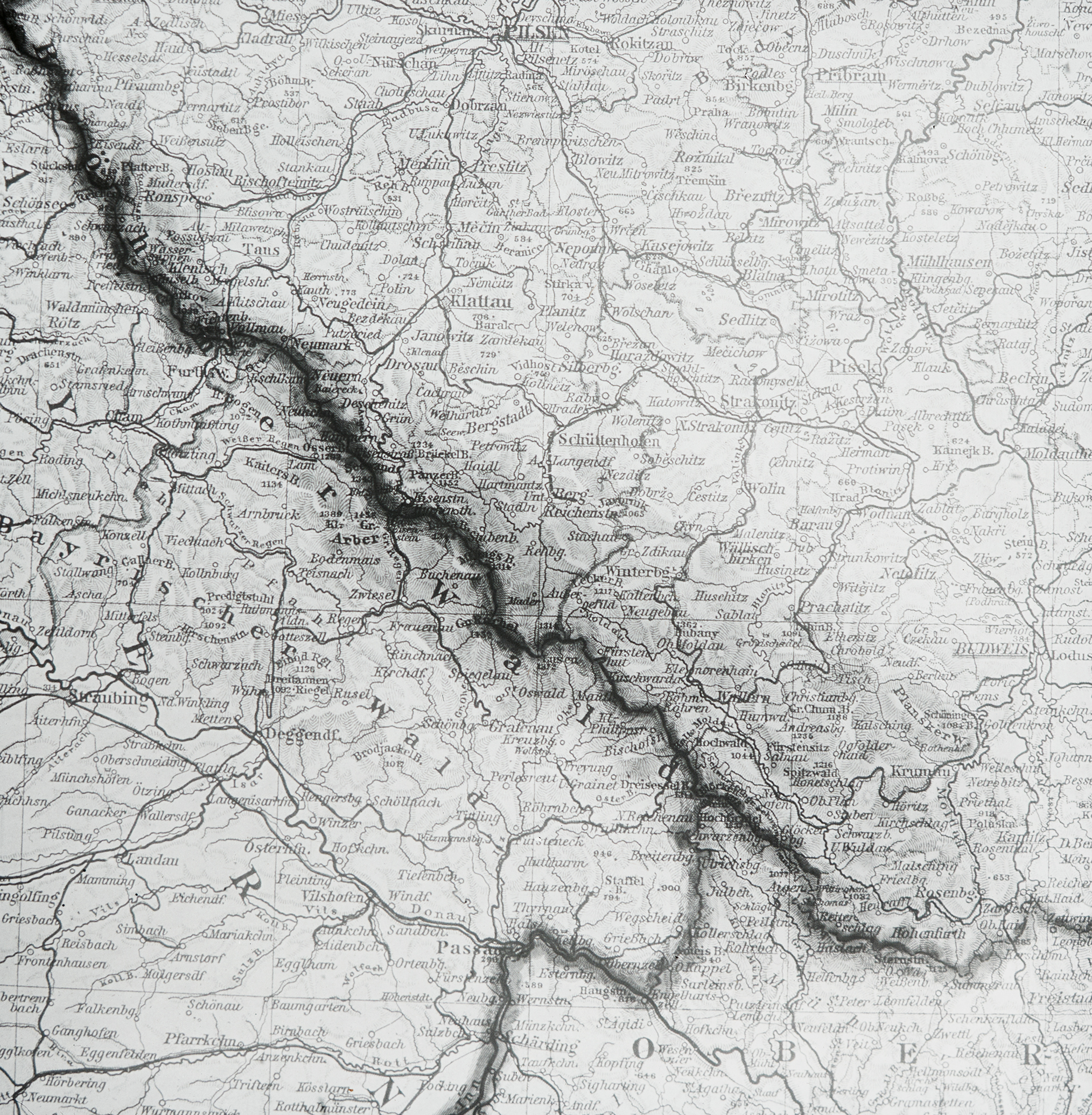 Eine Karte der Dreiländergrenze zwischen Deutschland (Bayern), Österreich (Oberösterreich) und Tschechien (Südböhmen/Pilsen). Im heutigen Horní Planá wurde Adalbert Stifter 1805 geboren.
