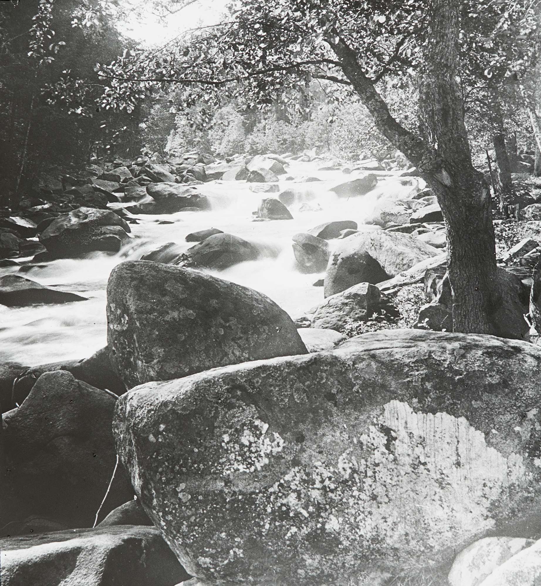 Ein Fluss, in dem eine Vielzahl an Felsen steht.