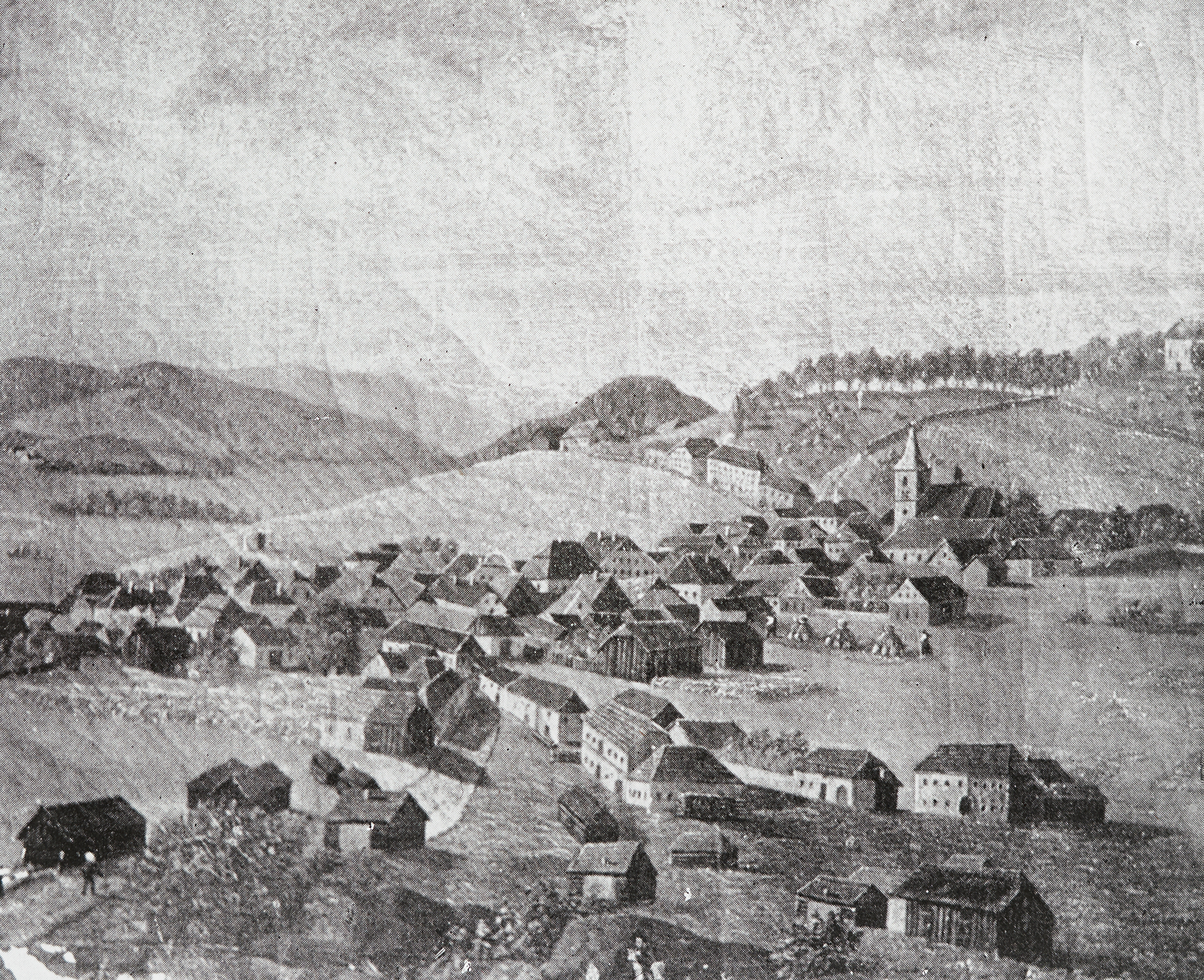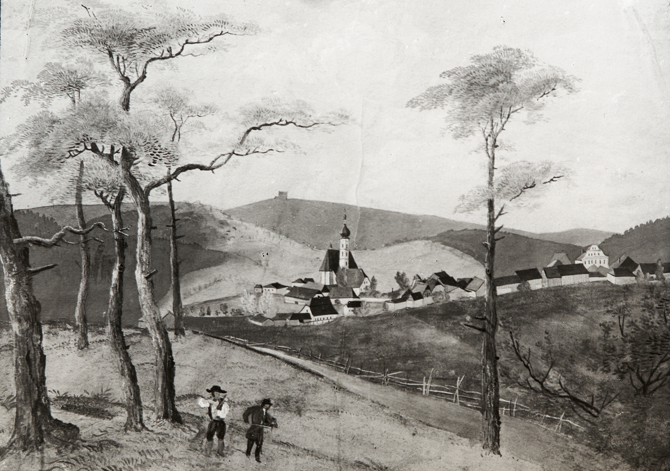 Eine von Adalbert Stifter gemalte Ansicht von Oberplan.
