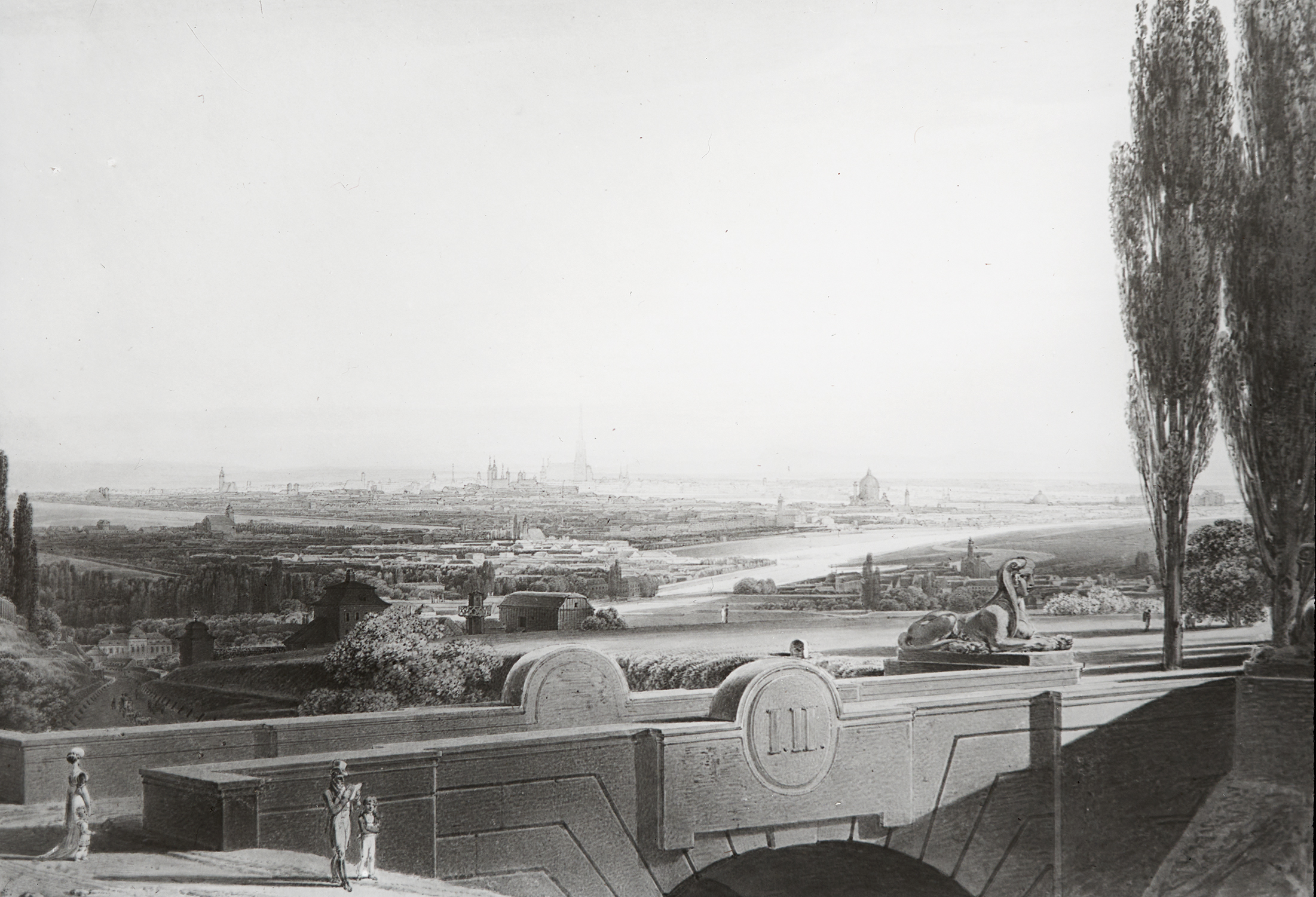 Von einem hoch gelegenen Punkt hat man hier eine gute Aussicht über Wien. In der Ferne kann man den Stephansdom in seinen Umrissen erkennen.