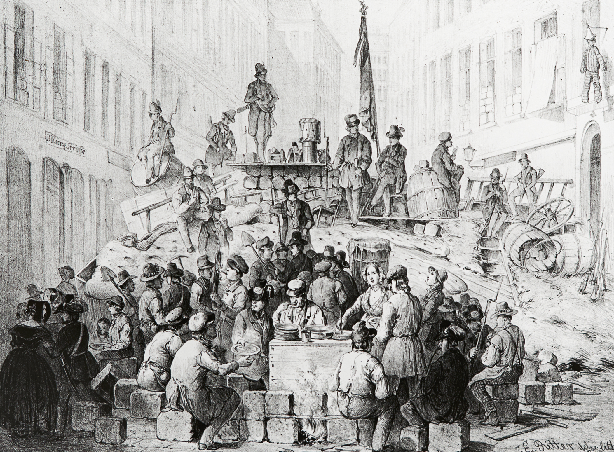 Die Aufständischen der Revolution 1848 errichteten insgesamt 160 Barrikaden. In der Märzstraße wurde am 26. Mai 1848 die erste ebendieser Barrikaden erbaut.