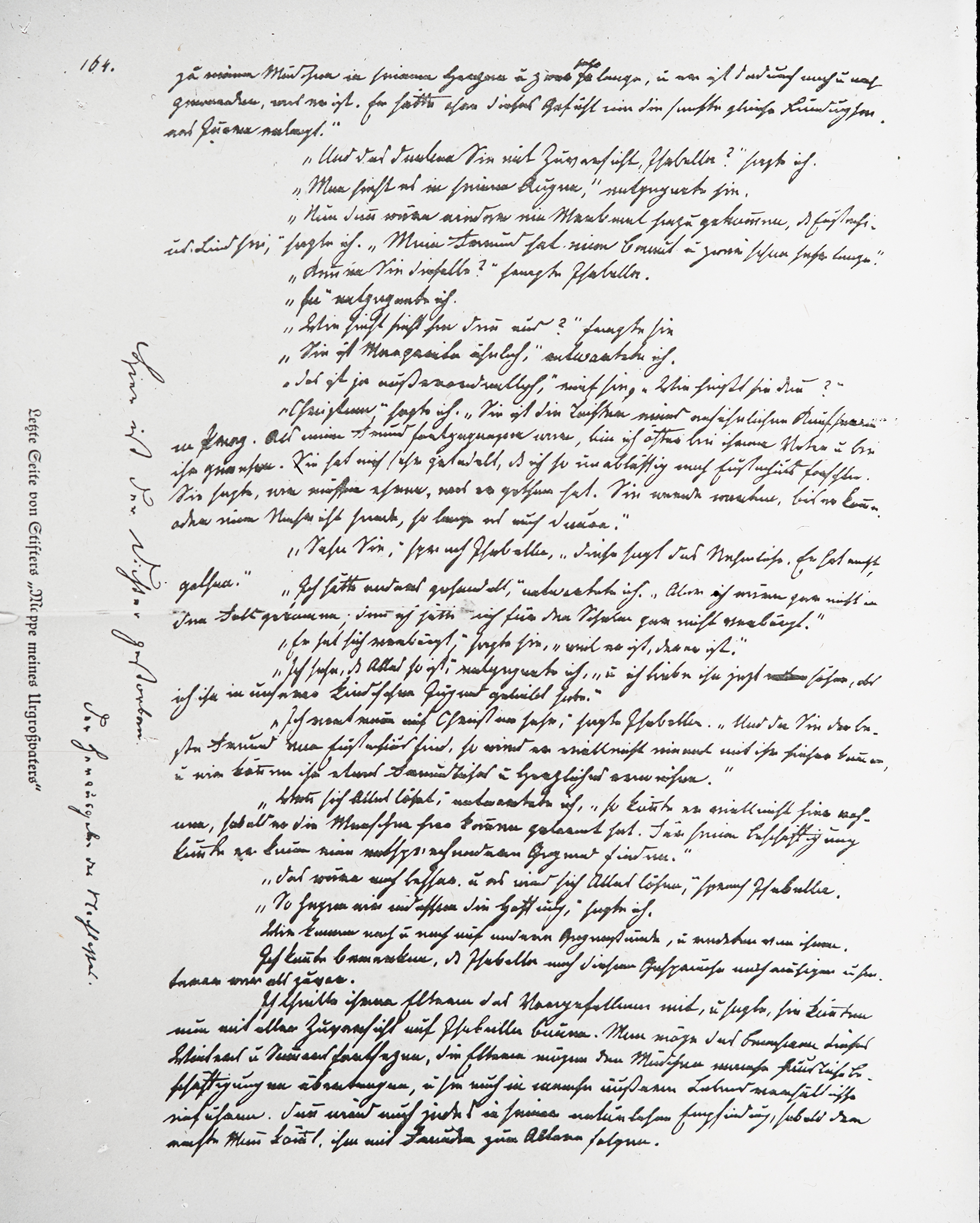 Abgebildet ist die Handschrift der letzten Seite von Stifters "Mappe meines Urgroßvaters".