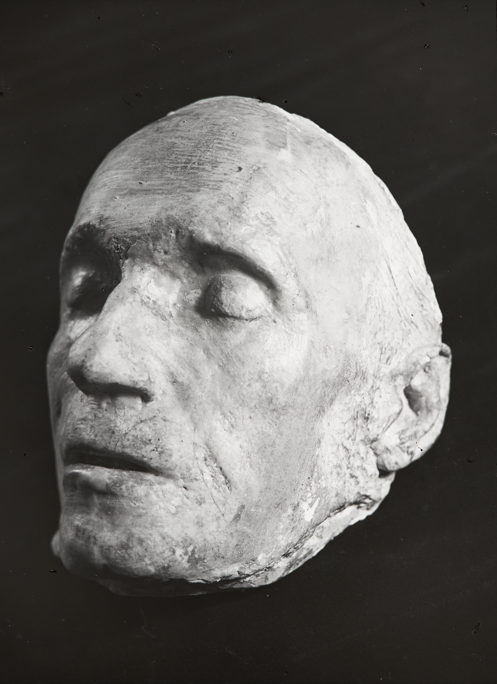 Die Totenmaske von Adalbert Stifter. Josef Rint fertigte sie nach Stifters Ableben an.