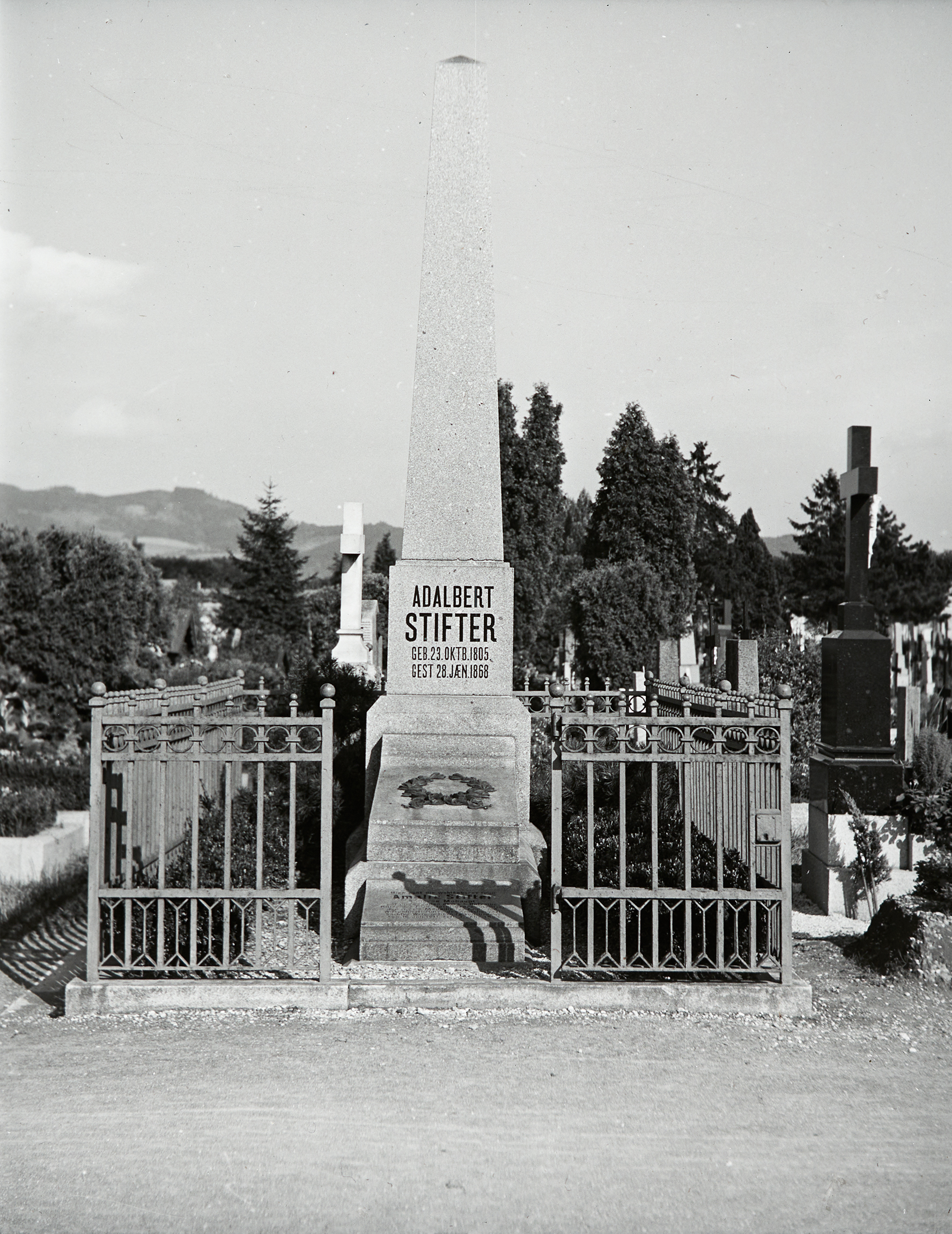 Adalbert Stifters Grab in Linz. Er ist gemeinsam mit seiner Frau Amalia, am St. Barbara-Friedhof begraben. Er starb am 28. Jänner 1868.