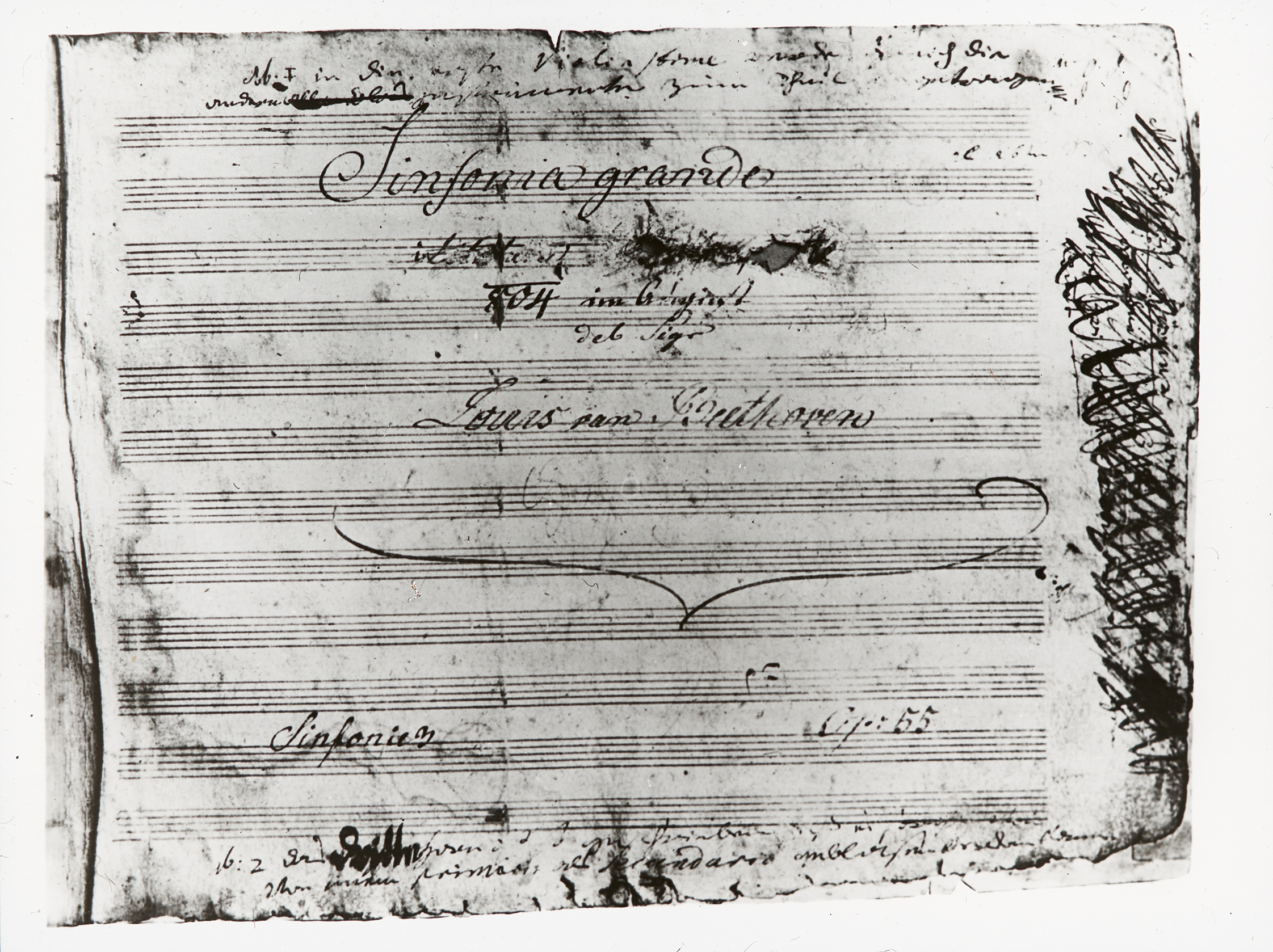 Notenblatt mit der Aufschrift Sinfonia Grande und der Unterschrift von Ludwig van Beethoven.