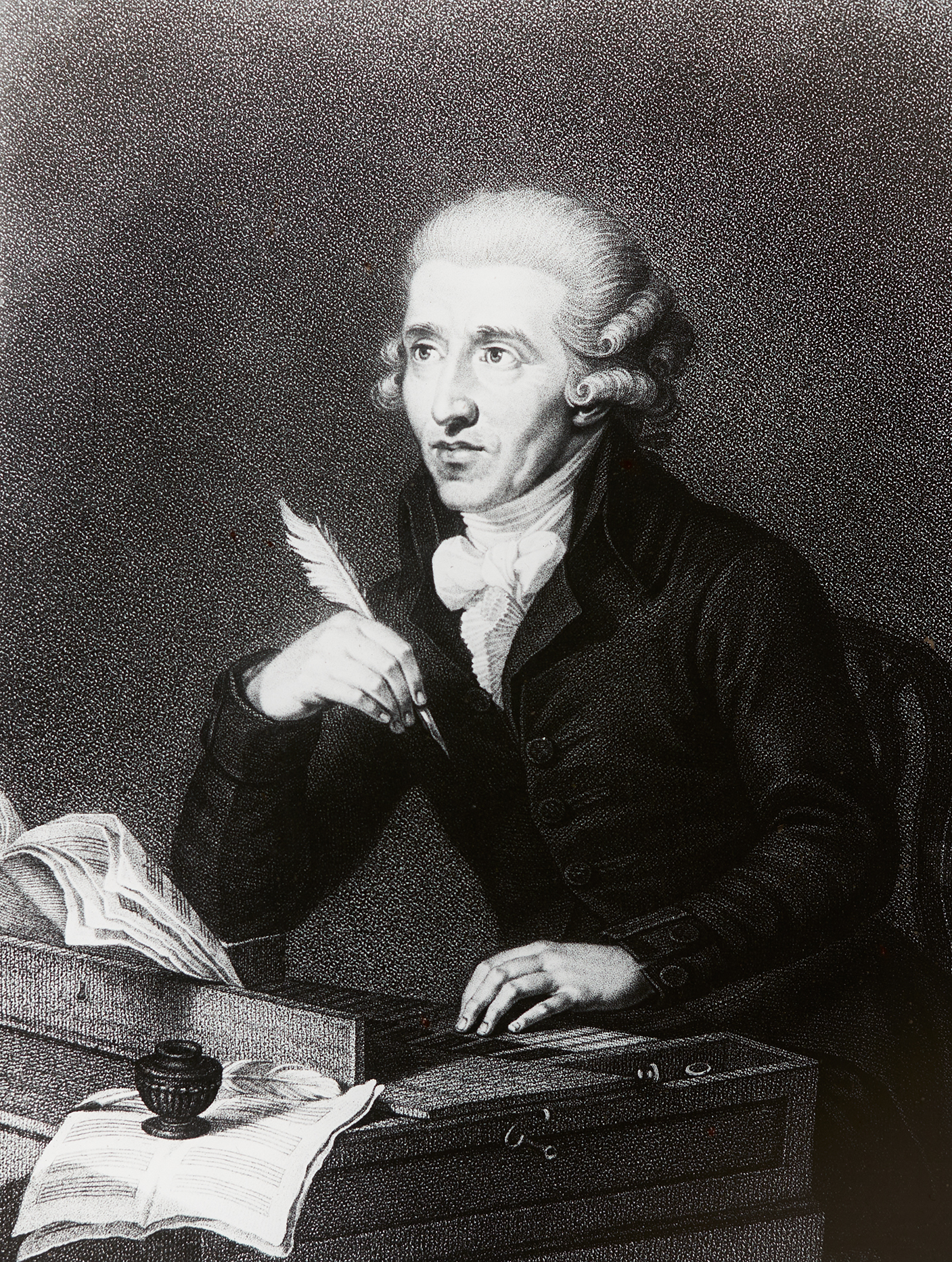 Portrait von Joseph Haydn, das ihn bei seiner Arbeit, dem Komponieren, zeigt.