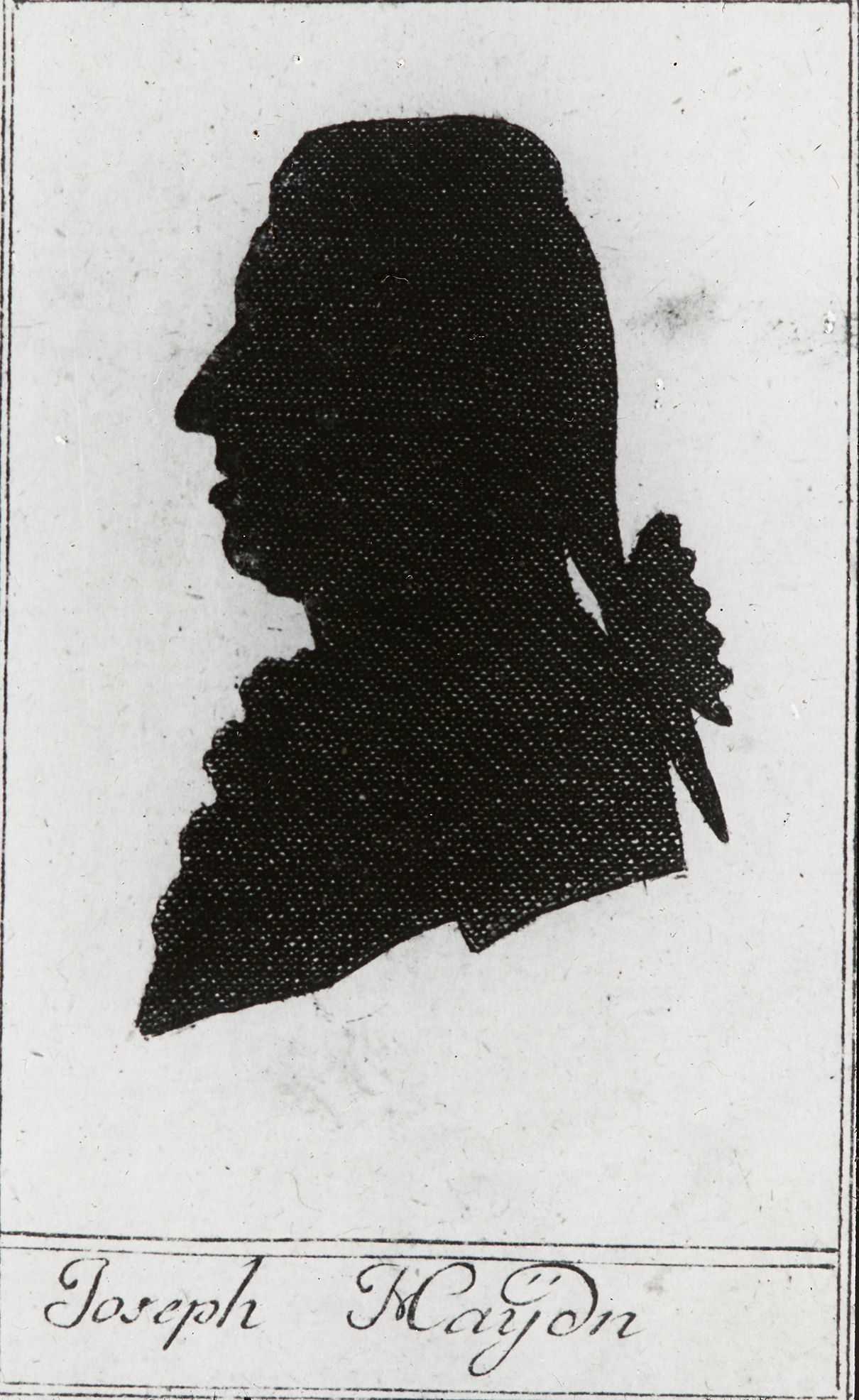 Die Silhouette von Joseph Haydn. Diese Seitansicht wurde angefertigt und veröffentlicht im Theaterkalender 1788.