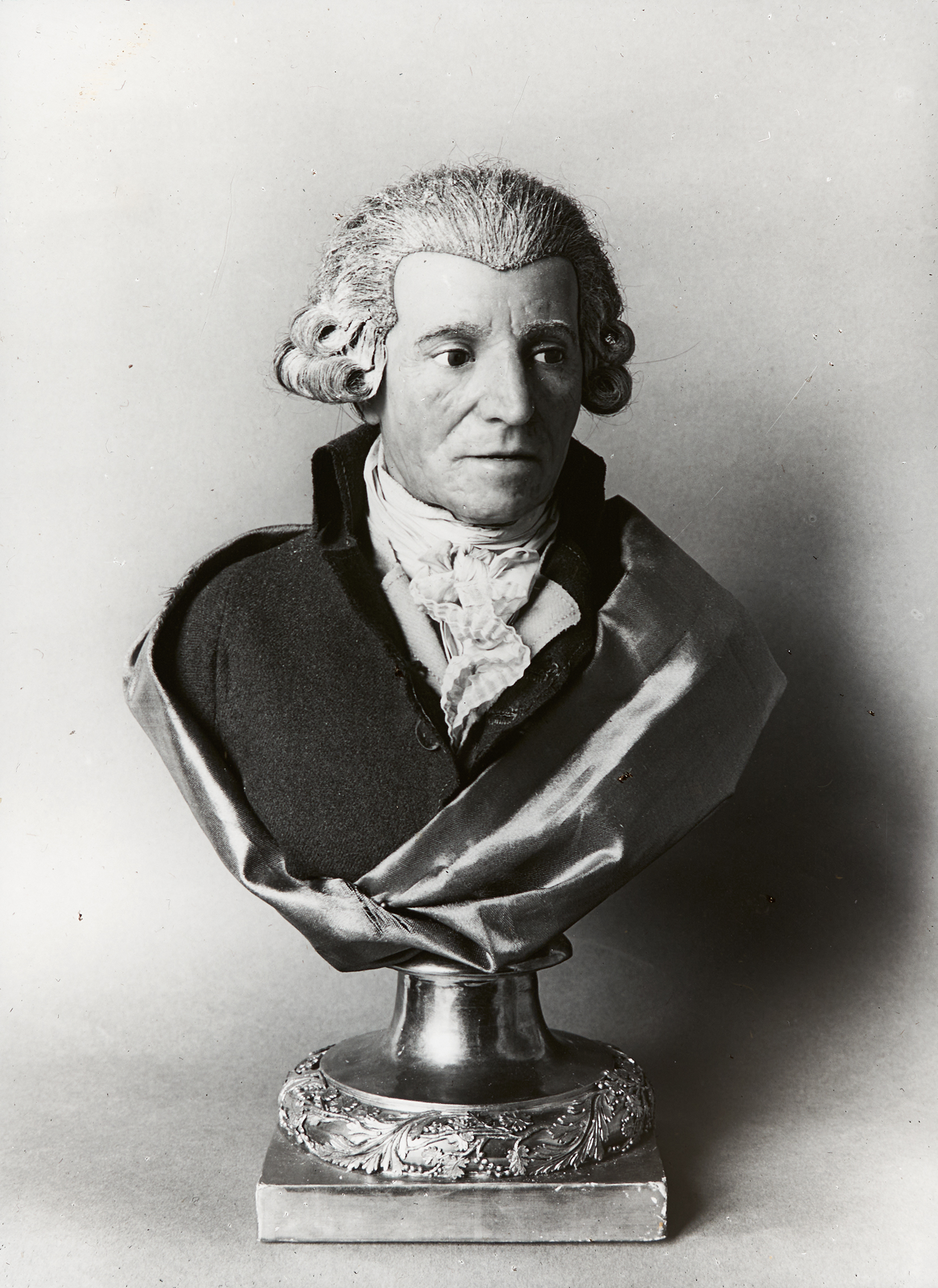 Franz Christian Thaler fertigte eine lebensgroße Büste aus Wachs an, die Joseph Haydn detailgemäß bis zur Schulter zeigt.