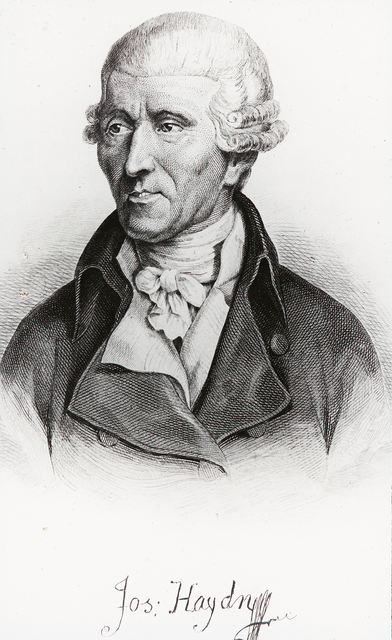 Eine Gravur von Joseph Haydn, die durch den belgischen Maler Edouard Hamman nach Haydns Tod angefertigt wurde.