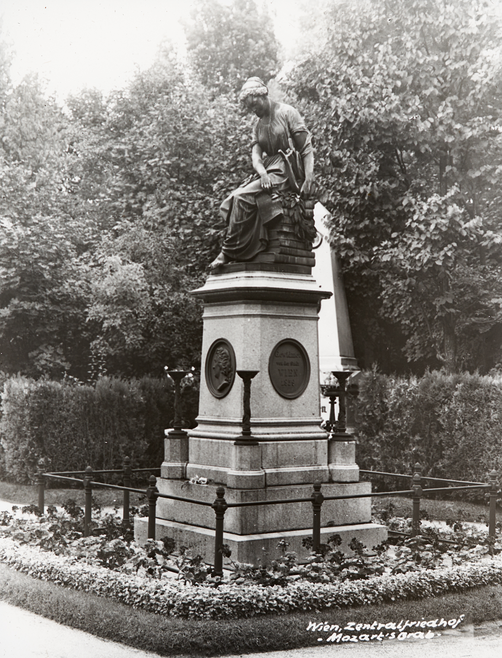 Wolfgang Amadeus Mozart gilt als einer der bedeutendsten österreichischen Komponisten. Er lebte von 1756 bis 1791, wurde in Salzburg geboren und verstarb in Wien. Er galt als besonders bedeutsames Wunderkind, sein Werk ist weltbekannt. Hier abgebildet ist Mozarts Grabstätte am Wiener Zentralfriedhof.