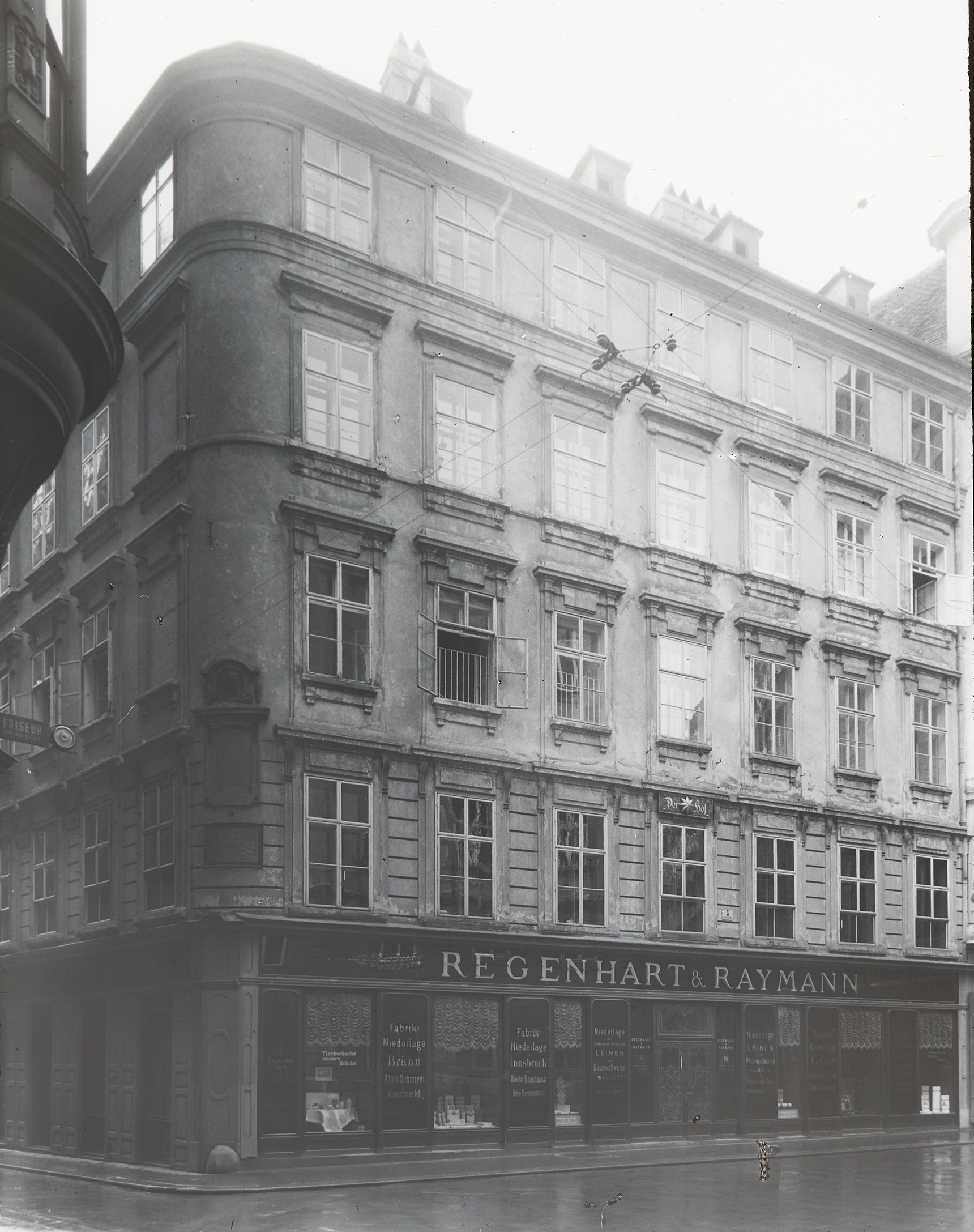 In diesem Gebäude befindet sich die Niederlassung der k&k-Hof- und Kammerlieferanten Regenhart & Raymann. Es handelte sich hierbei um eine Leinenfabrik, die großes Ansehen anhäufen konnte und ab 1859 den k&k-Hoflieferantentitel erhielt.