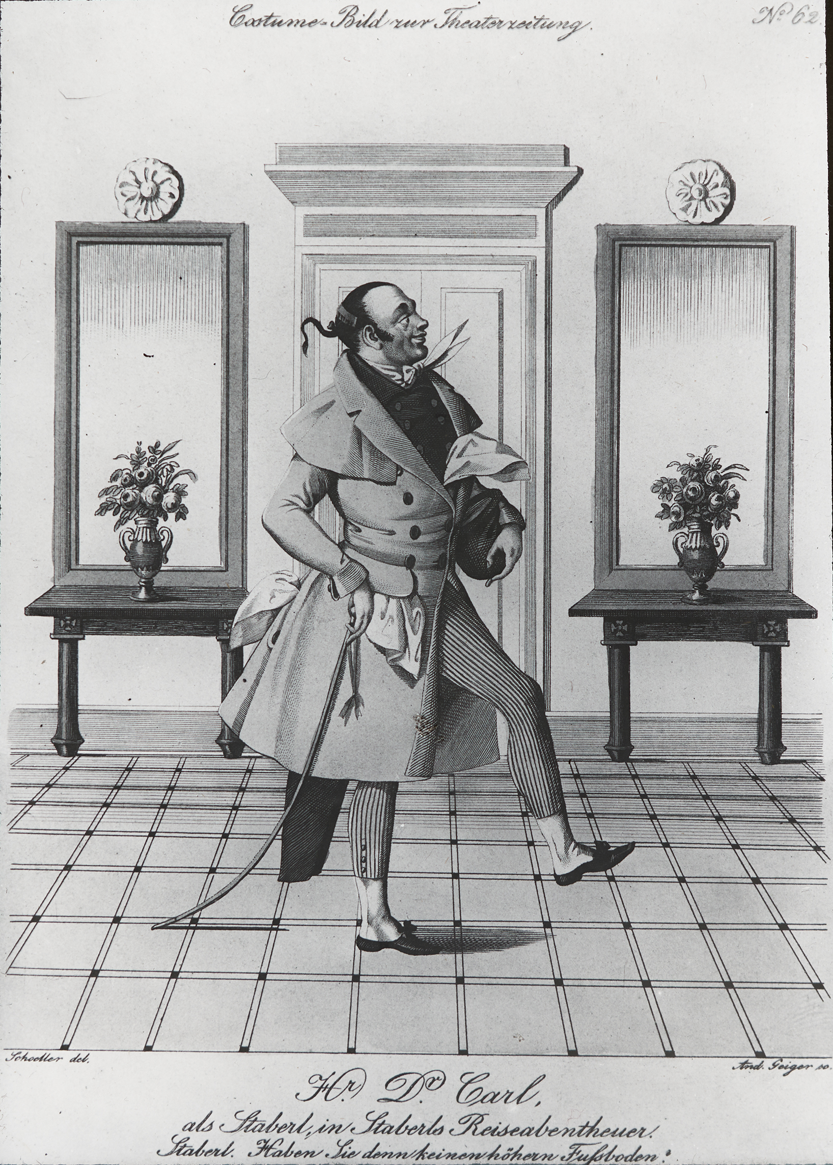 Herr Doctor Carl als Staberl in Staberls Reiseabenteuer, geschrieben von Adolf Bäuerle.