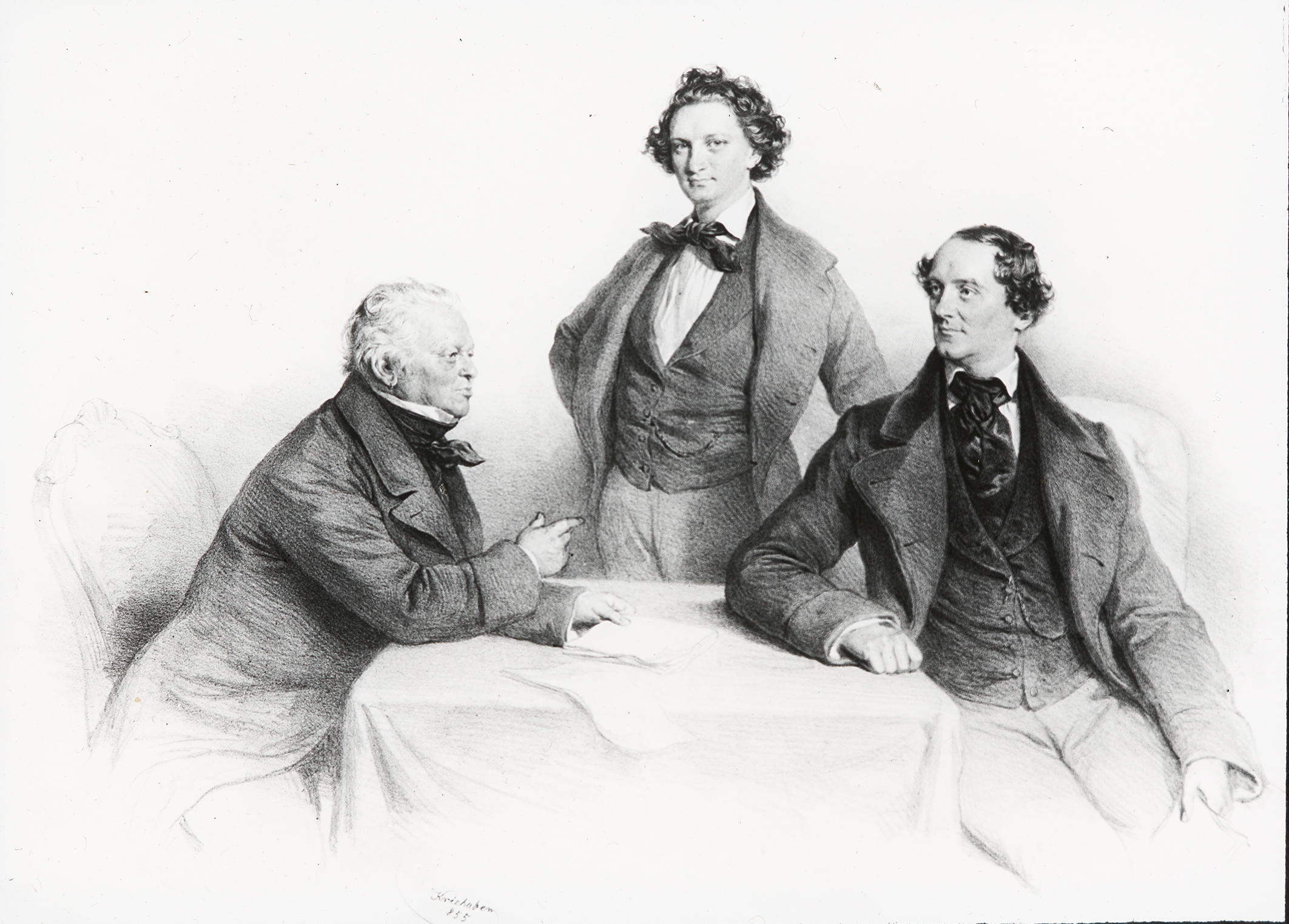 Johann Nestroy, Wenzel Scholz und Carl Treumann gemeinsam am Tisch.