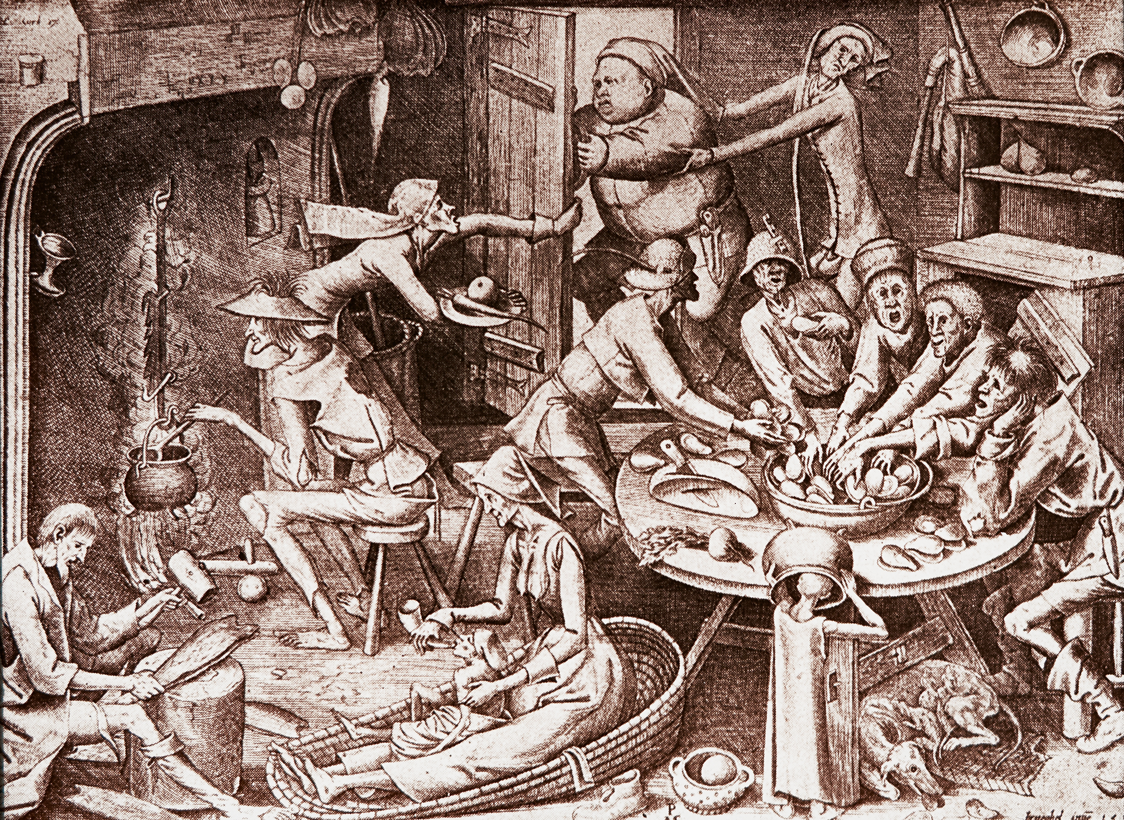 Karikatur von Pieter van der Heyden mit dem Titel "The fat kitchen".