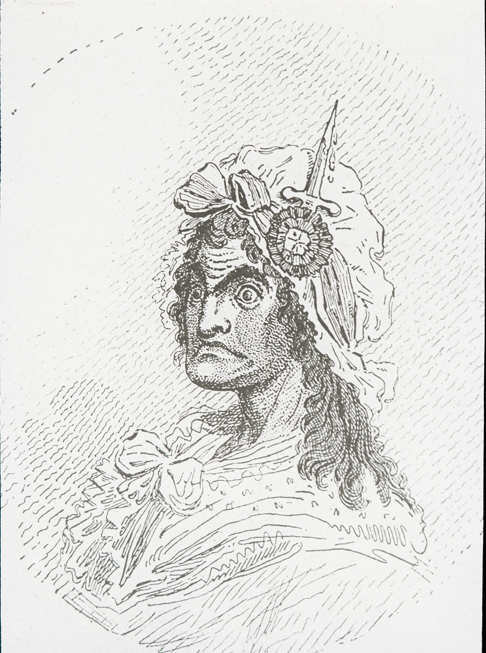 Satirische Darstellung einer Pariserin zur Zeit der Französischen Revolution.