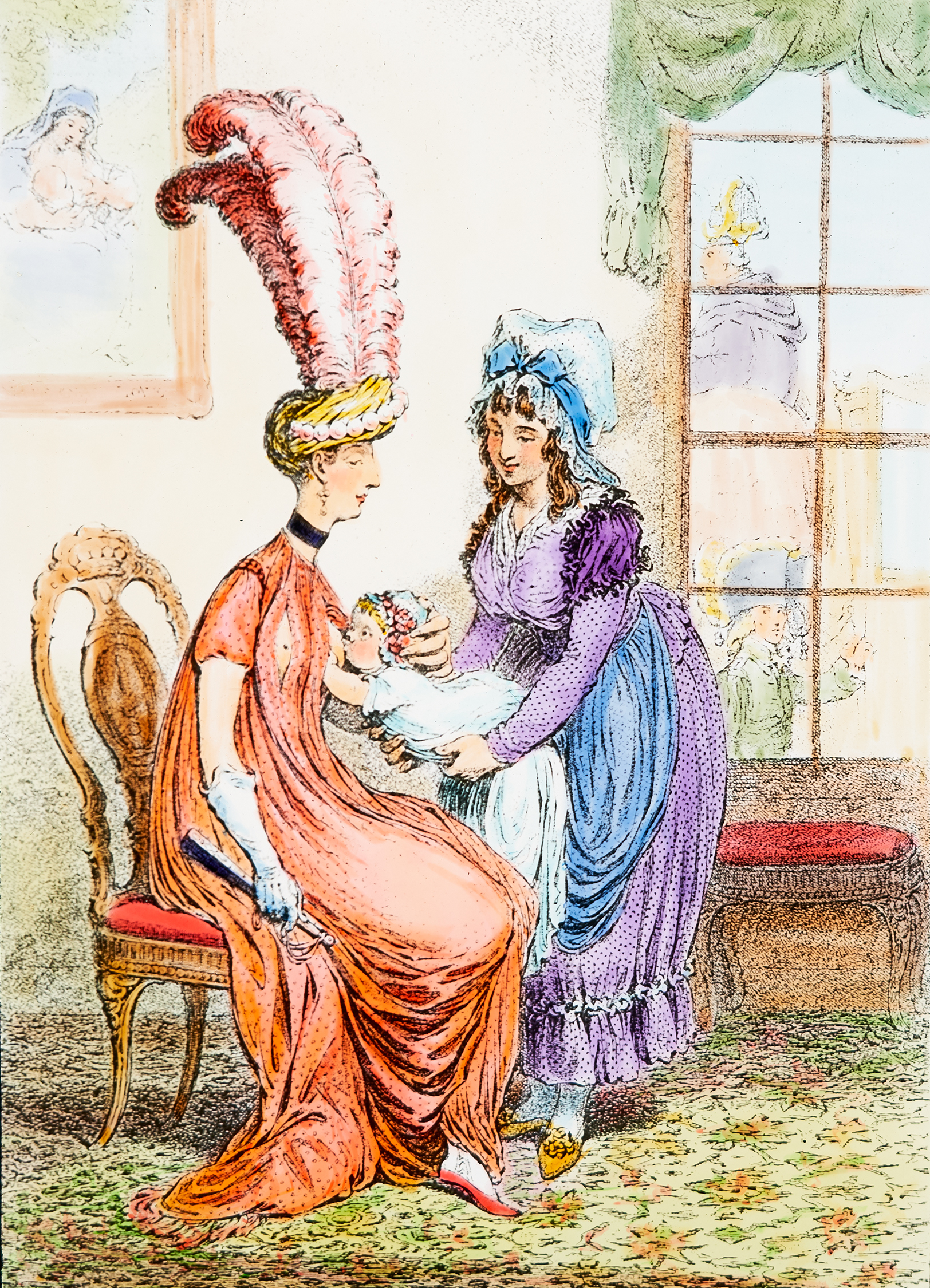 Karikatur mit dem Titel: The fashionable Mamma or the convenience of modern dress.