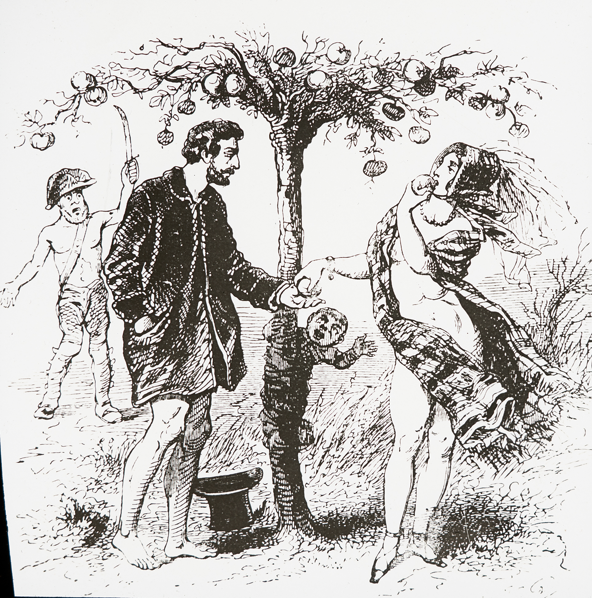 Karikatur mit dem Titel: "Es gibt nichts Schöneres als die verbotene Frucht", erschienen in Grandvilles Reihe von hundert Sprüchen.