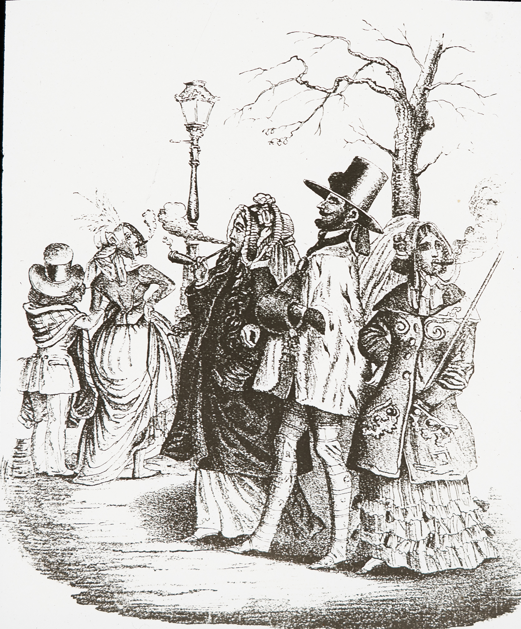 Karikatur mit dem Titel "Rauchende Frauen, 19. Jahrhundert".