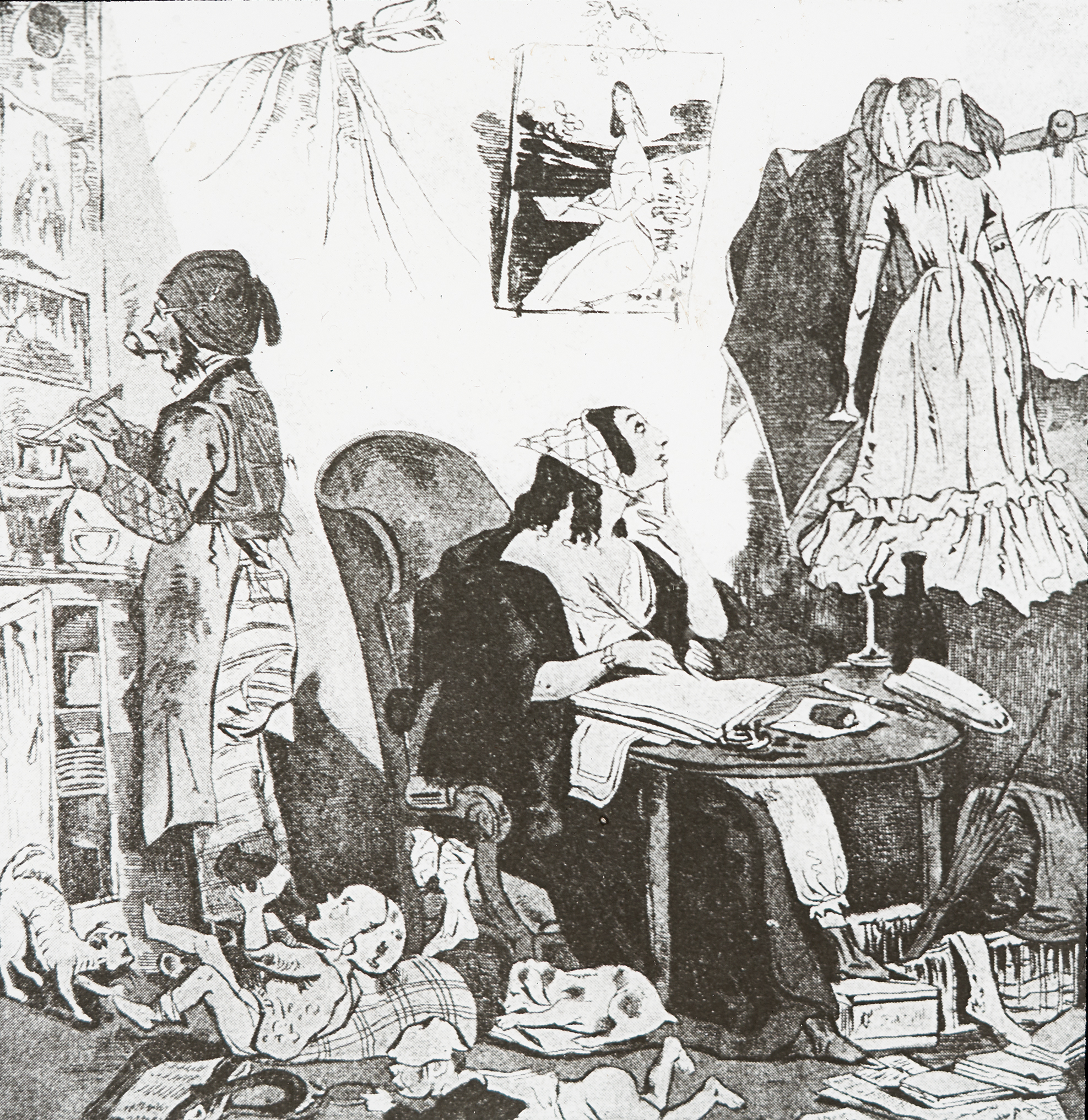Karikatur von Honoré Daumier mit dem Titel "Die Blaustrümpfe".