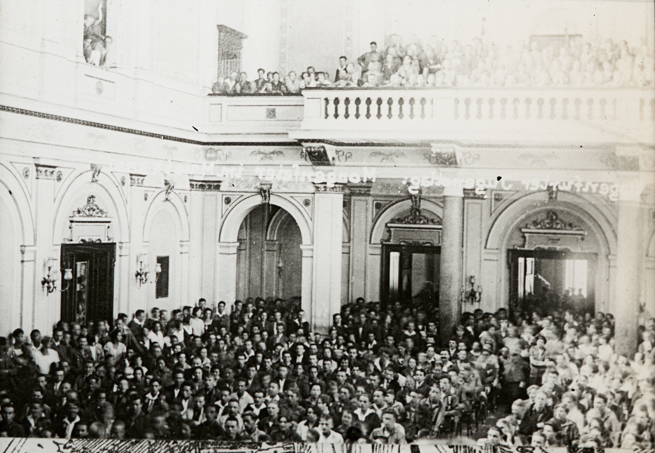 Ein großes Publikum, das sowohl die unteren Ränge als auch die Tribünenplätze dieses Saales ausfüllt.